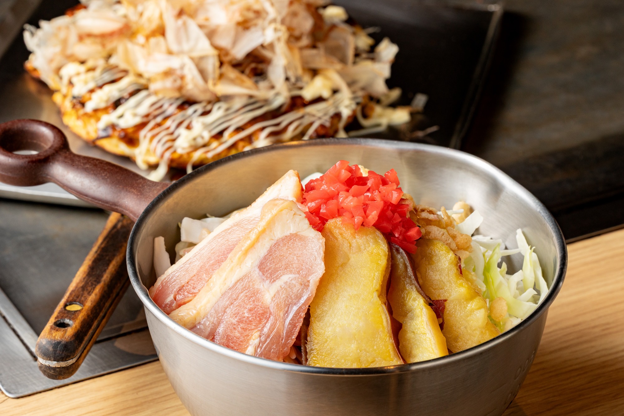肥後の赤鶏と熟成さつまいもの絶品お好み焼き
