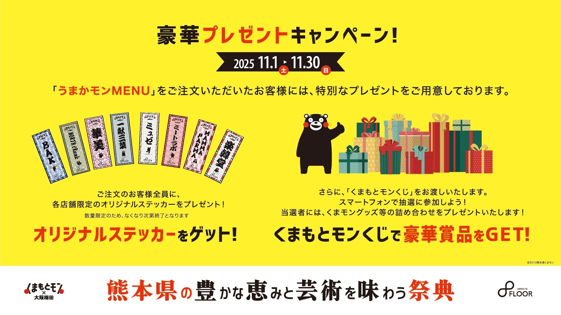 また、ダブルチャンスで、くまもんグッズ等豪華賞品が当たる「くまもとモンくじ」も開催。