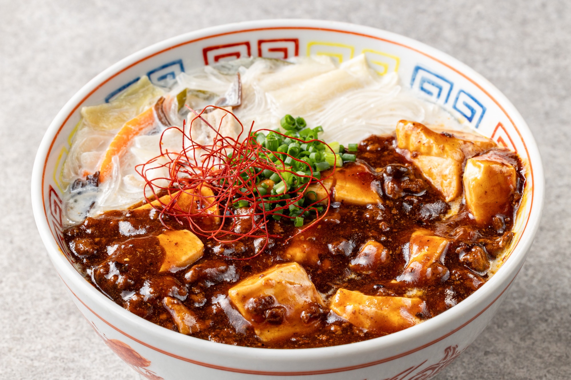 熊本県の郷土料理である「太平燕」の穏やかな風味に、特製麻婆の刺激的な辛味を融合させた、独創的な一品です。春雨と豊富な野菜が使用された栄養価の高いスープに、麻婆の程よい辛味が絡み合い、心身ともに温まる満足感のある一皿をご提供いたします。