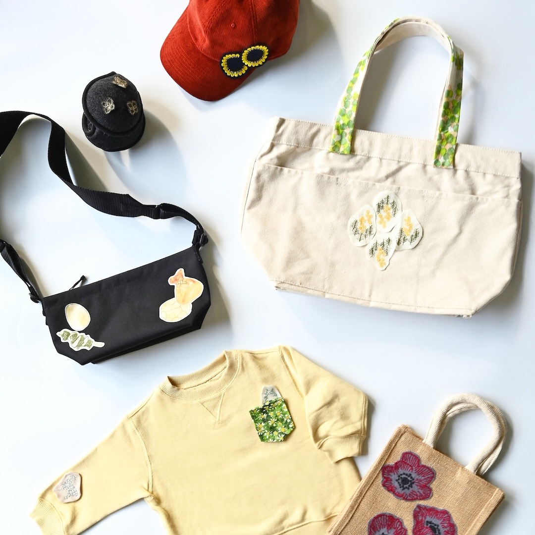 当日無印良品で購入頂いた商品に、お好きなハギレを選んでコラージュしよう。