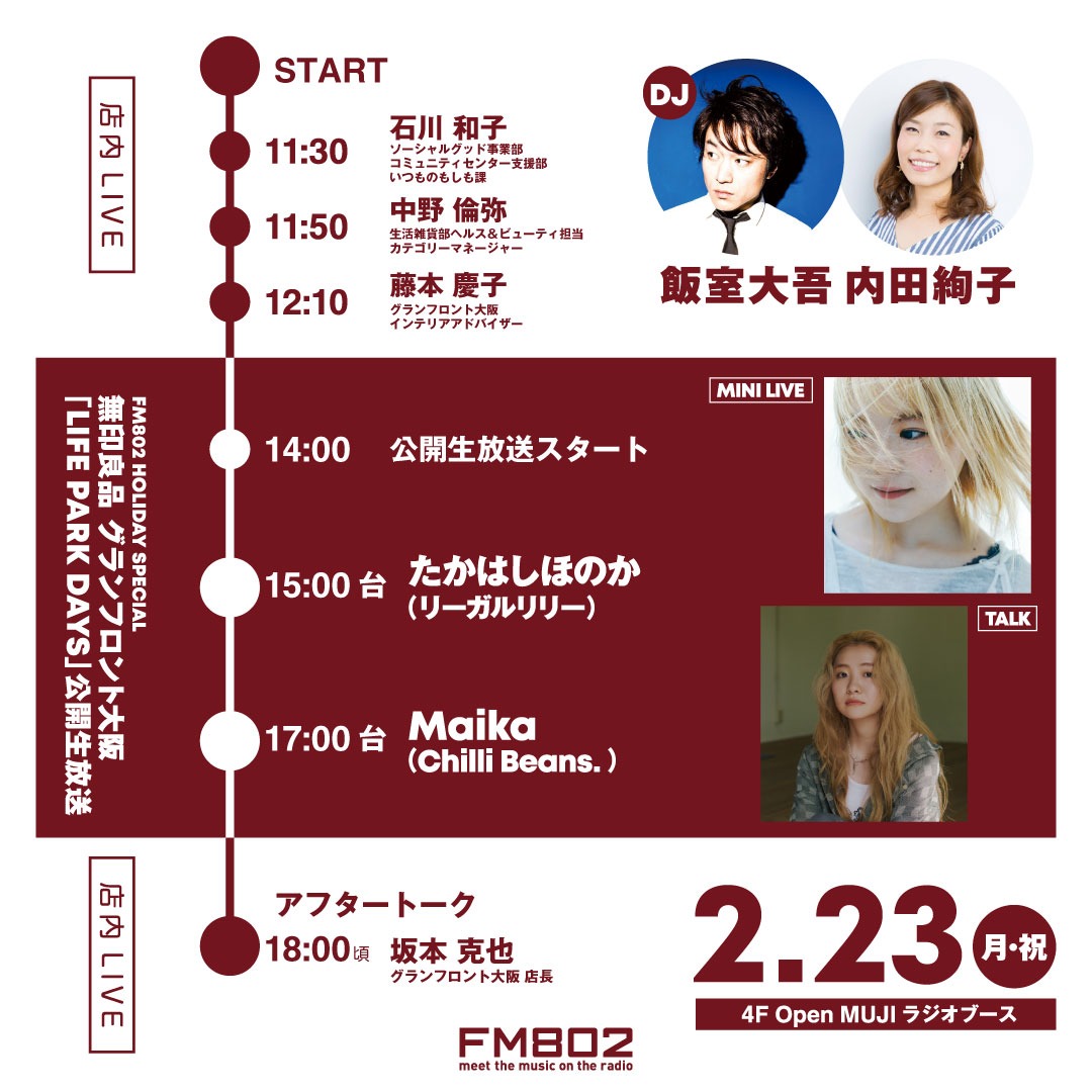 今回は2月23日(月・祝)開催のFM802との企画イベント「FM802 HOLIDAY SPECIAL」の前後に、毎回行われる店内にいるお客様に楽しんでいただく『店内LIVE』のお知らせです。