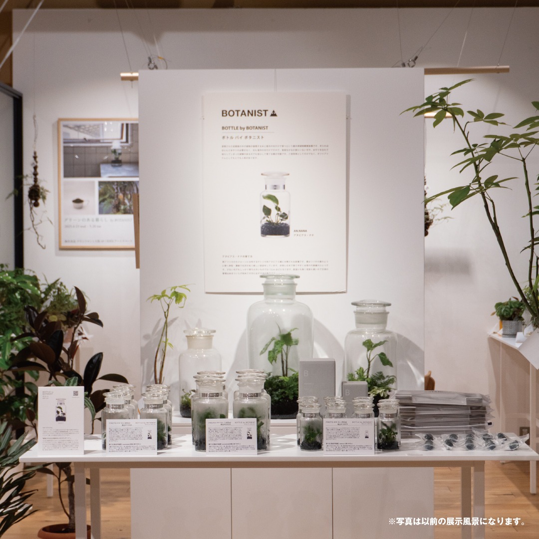 毎日の水やりが不要で部屋の照明だけで育てられる植物観察装置「BOTTLE」をはじめとした植栽アイテムを多数取り揃えます。