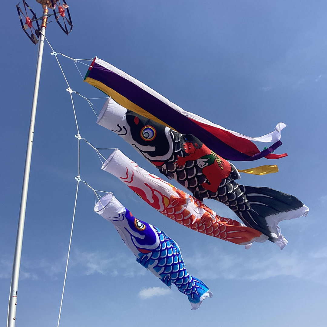 子どもたちの元気な成長を願って飾られる鯉のぼり。