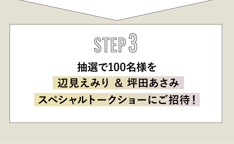 ※ご当選された方には、トークショー開催前日までに[招待案内]をお送りいたします。トークショー当日は、事前にお送りする[招待案内]と[公的身分証明書]を、必ずお持ちの上ご参加ください。