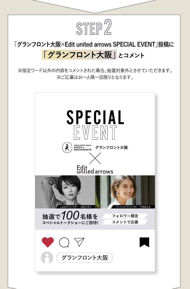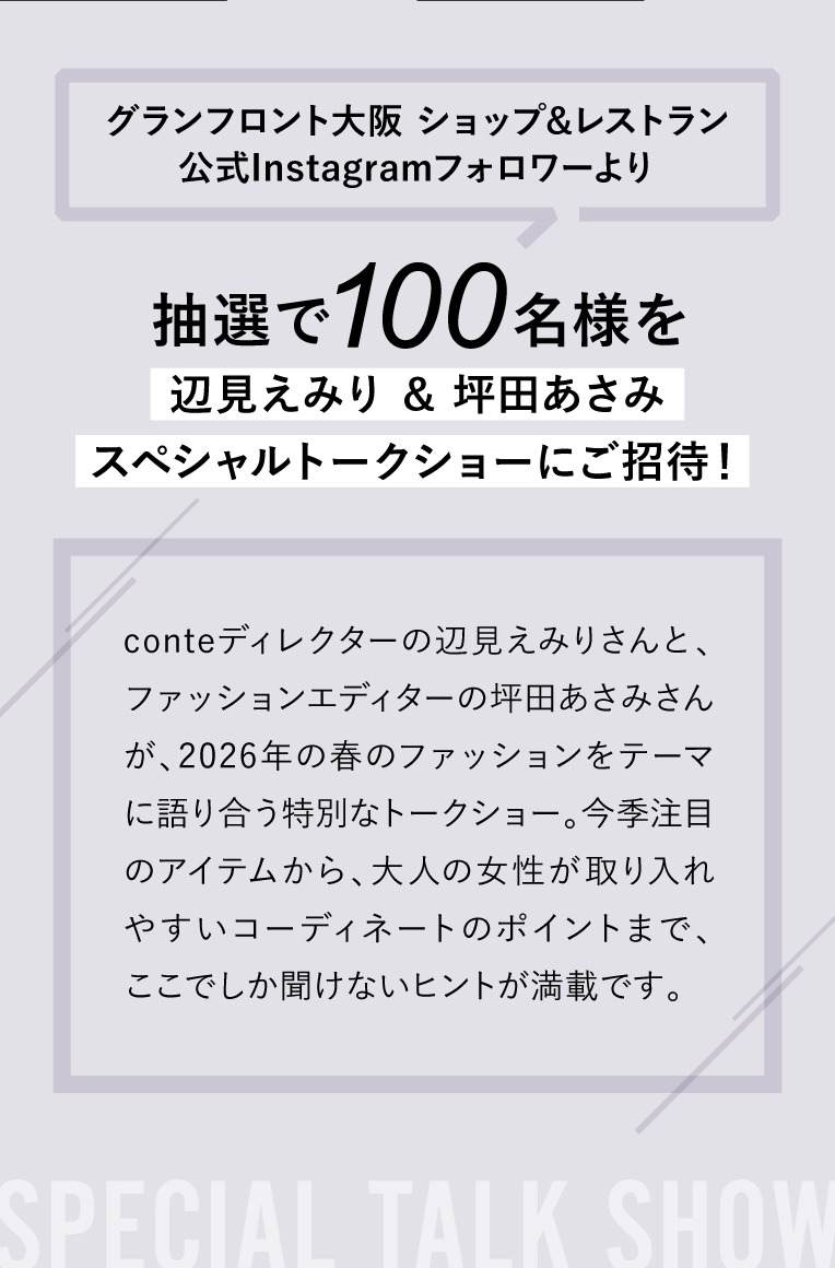 Instagramキャンペーン 抽選で100名様をトークショーへご招待!グランフロント大阪ショップ&レストラン公式Instagramフォロワー限定!