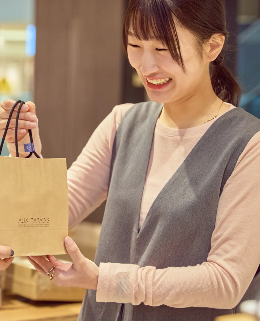 このブランドと出会ったのは、前職で一緒に働いていた同僚から「きっとライフスタイルに合うと思う」と勧められたことがきっかけでした。元々愛用していた商品もあり、ブランドの考え方に自然と惹かれ、今ではその同僚の娘さんと一緒に働かせていただくご縁にも恵まれています。そうした人との繋がりを大切にしながら、これからもお客様ひとりひとりに寄り添った提案をしていきたいです!