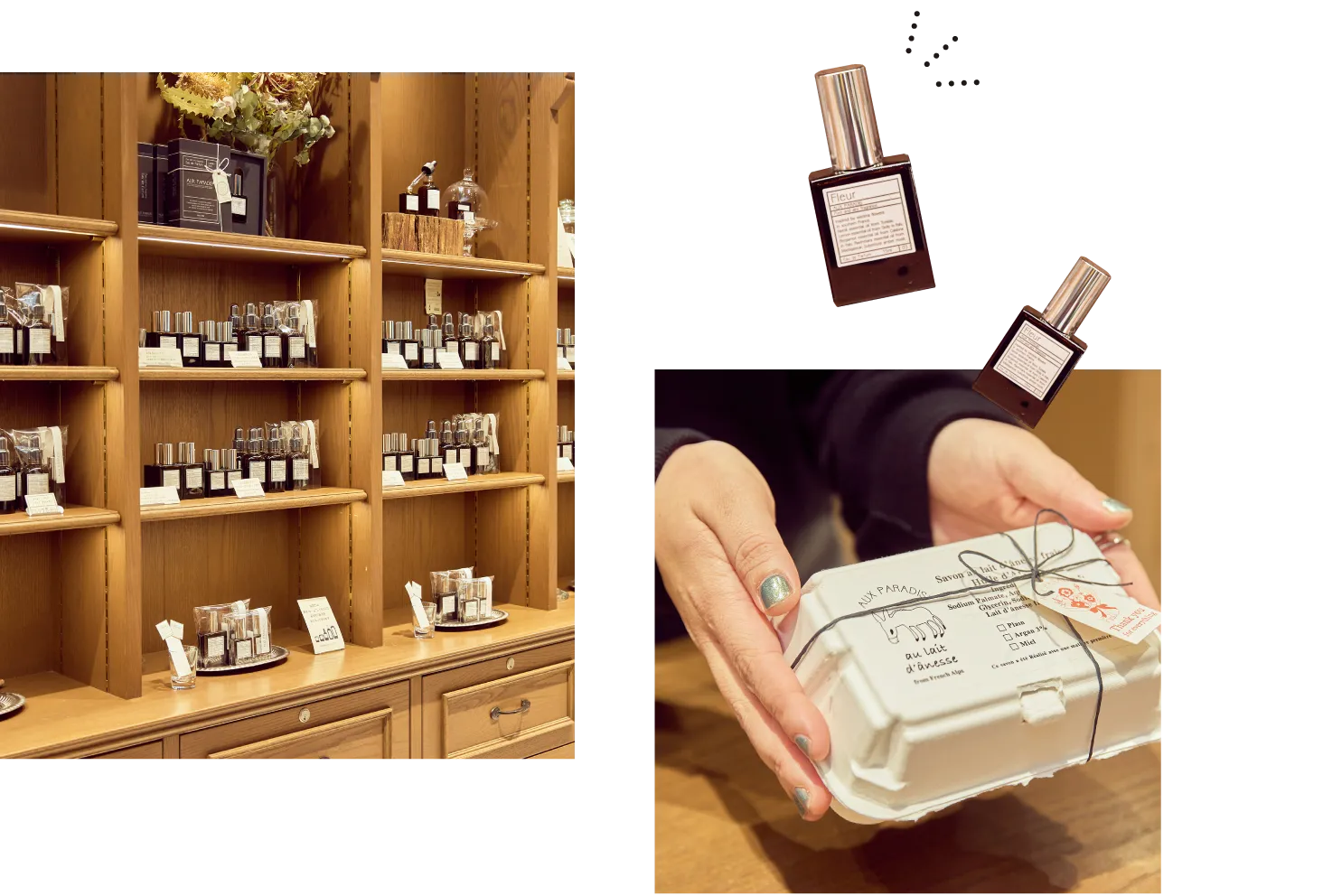 5・6年ほど前から、ハンドクリームやフレグランスを愛用しているお気に入りのお店です!天然香料にこだわった香りはどれもやさしく、強すぎないので、食事に出かける日でも気負わず使えるのが嬉しいポイント。なかでも、やわらかで上品な「フルール」はつい手に取ってしまう香りです。ハンドクリームやリップクリームは、ちょっとした気持ちを添えたいときのギフトにもおすすめです!