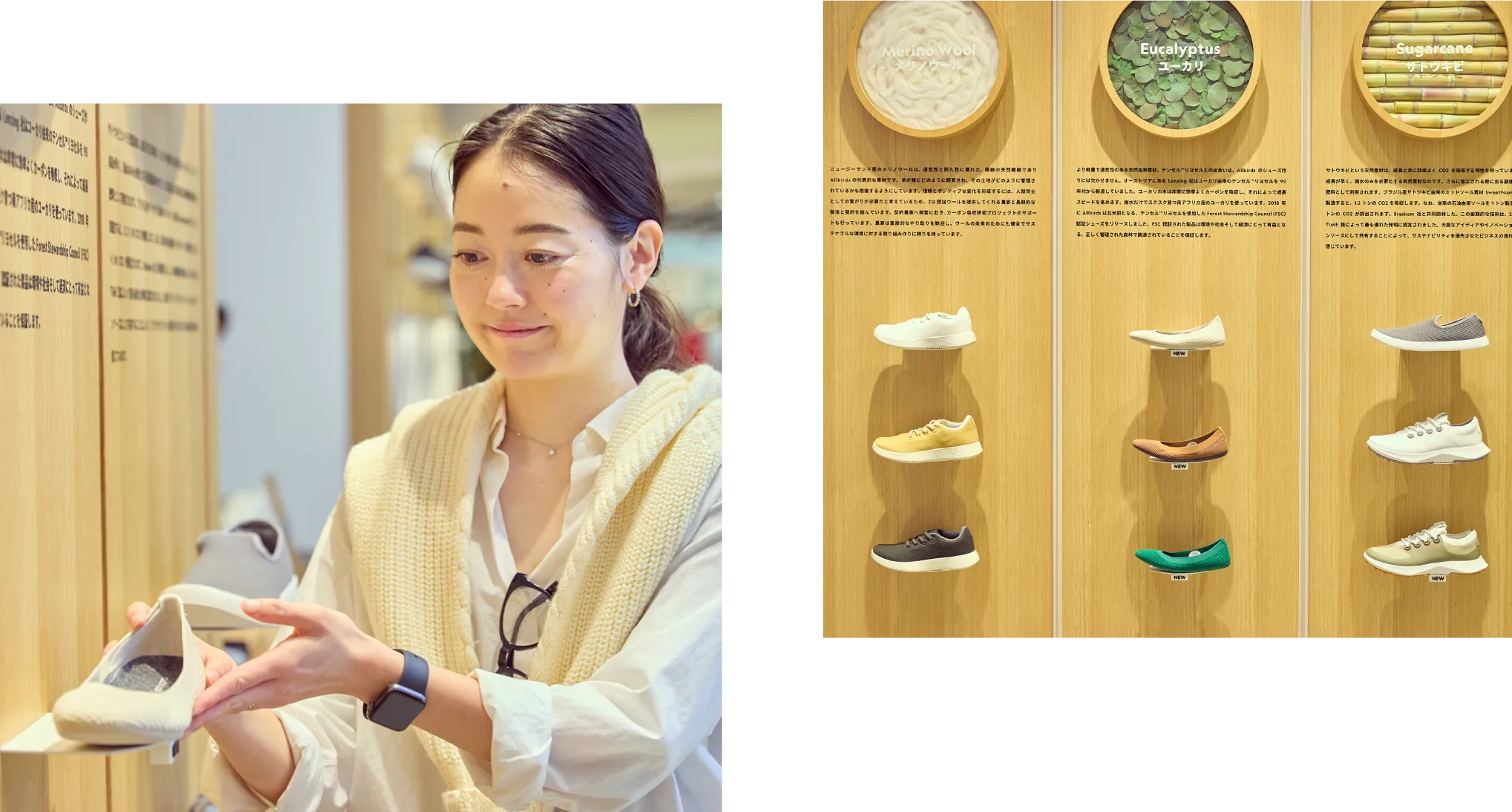南館4Fにあるシューズショップ「Allbirds」では、まるで雲の上を歩いているような快適さ、軽く、柔らかい、夢のような履き心地と環境に配慮した素材を使用したシューズを取り揃えています。