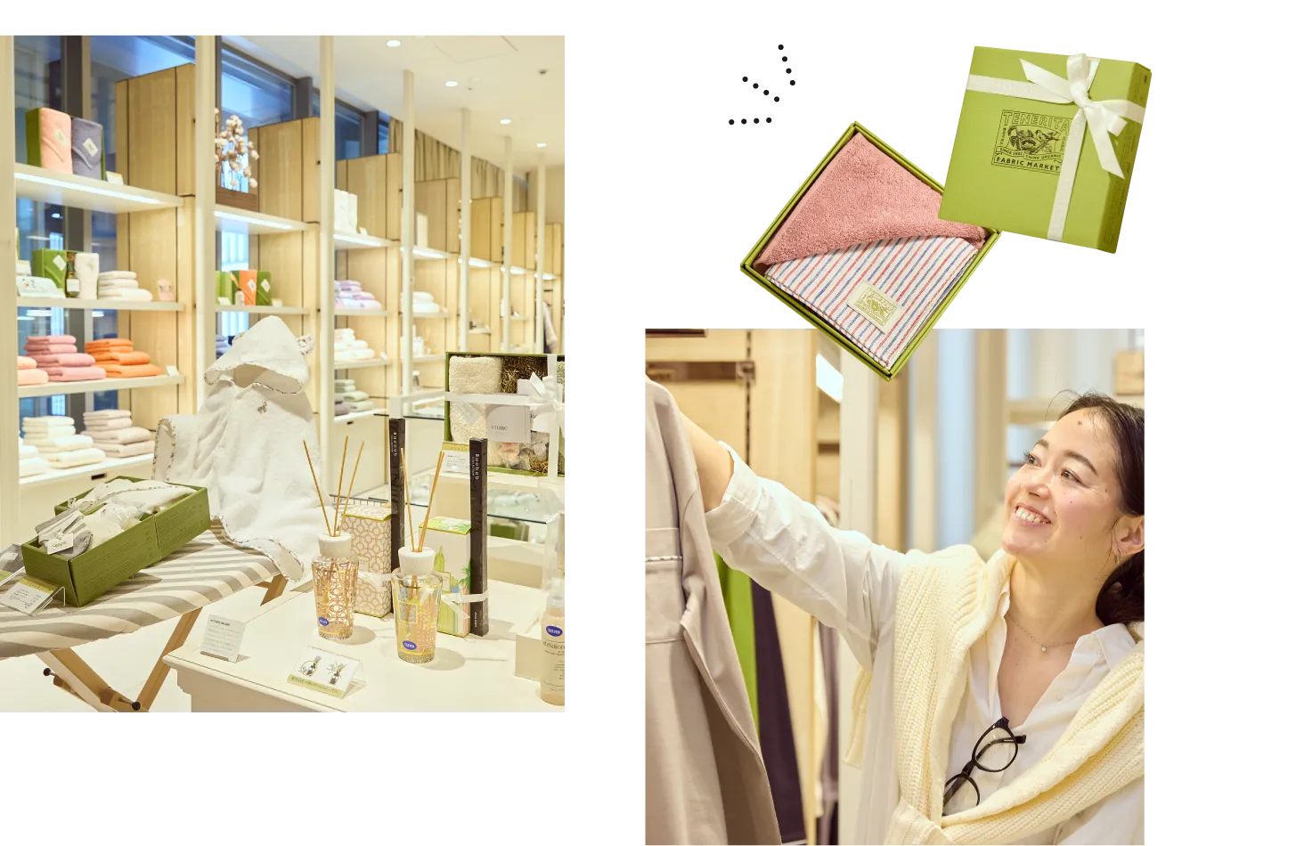 ギフトでいただいたことをきっかけに店舗を訪れたのですが、シンプルで洗練されながらも細部までこだわりが詰まったアイテムの数々に感動したのが、こちらのお店です!普段からタオルを愛用していて、肌触りが良いのはもちろんですが、豊富なカラーバリエーションも嬉しいポイント。いつも明るめのカラーを選んで、毎日の気分を上げています!