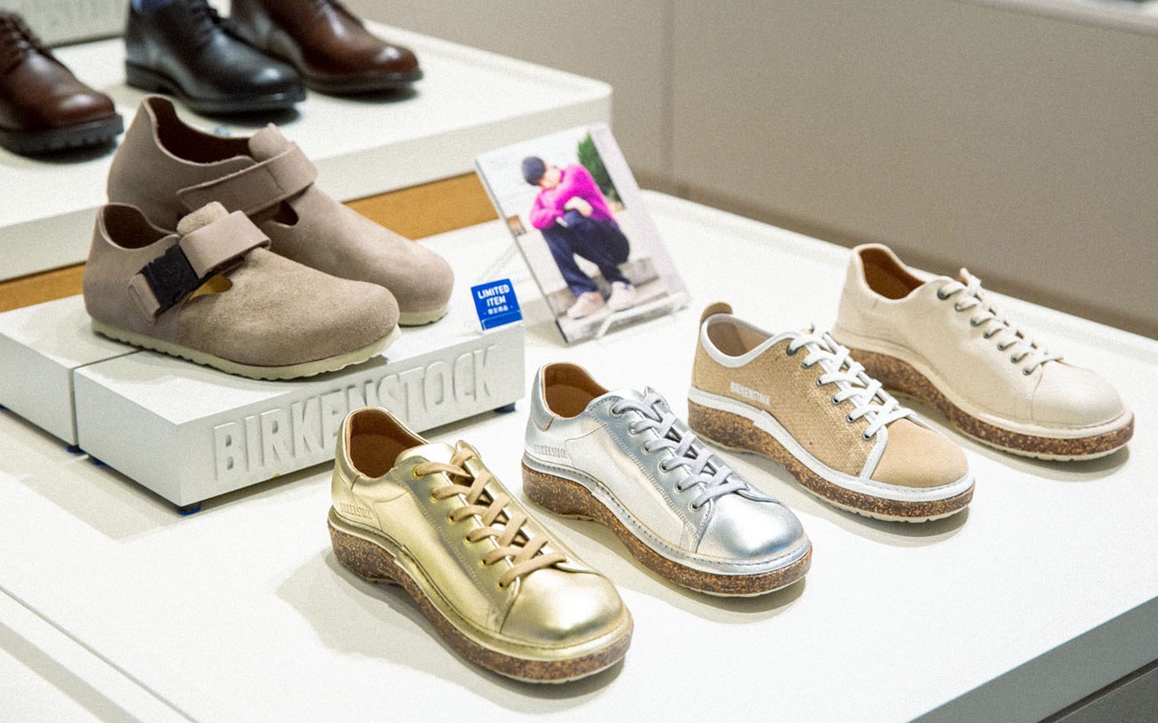 大阪市内にある6店の専門店舗は、それぞれエリアや施設の特性によってラインナップが変わるそう。こちらのお店は、スポーティーやストリートテイストが多め。定番のLONDONのベルトをクリックバックルにアレンジしたスポーティーなモデルは、梅田ではここだけの展開です。San Diego各25,300円、各LONDON26,400円/BIRKENSTOCK
