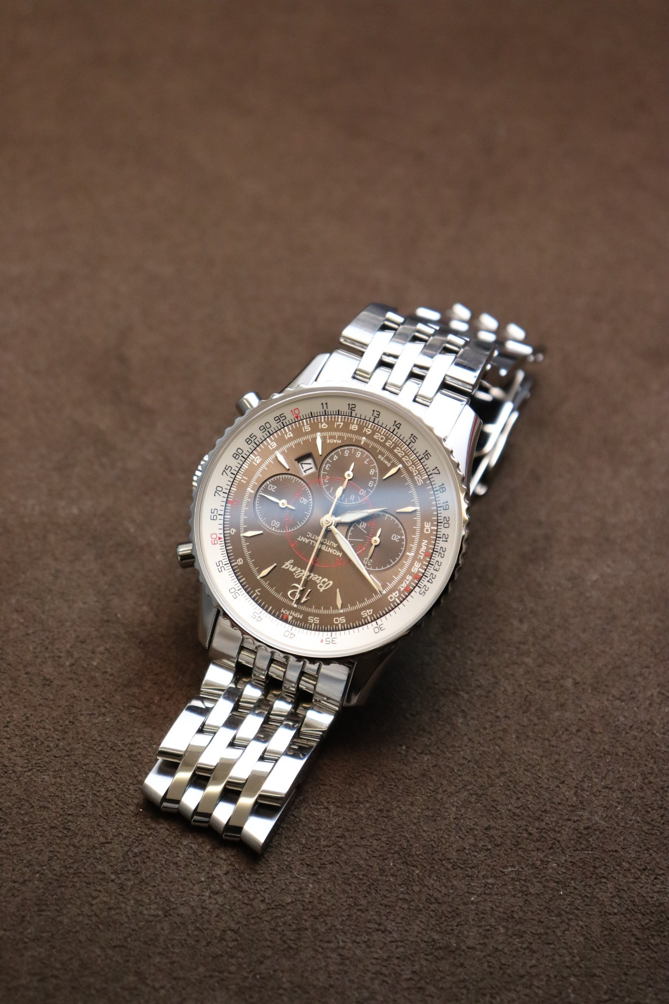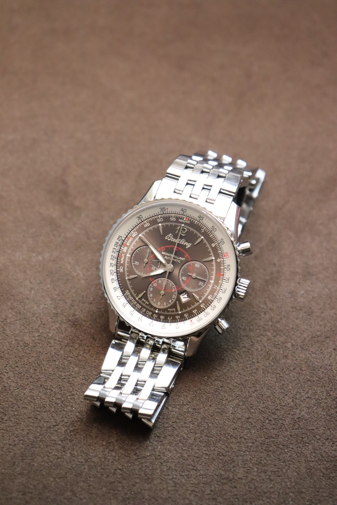 1892年から1979年の間、ブライトリング本社の建物があったラ・ショー・ド・フォンの「モンブリラン通り」に由来する名を持つ、初代クロノマットのデザインを受け継ぐ当モデル。ブライトリングの中では38mmと小ぶりなクロノグラフで、女性にも人気があるタイムピースです。