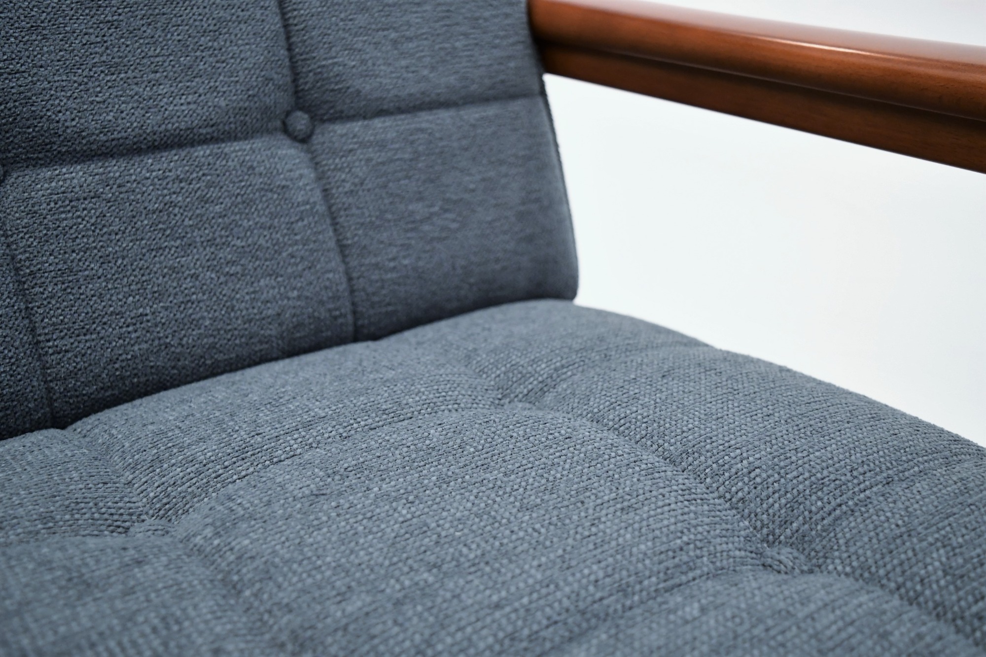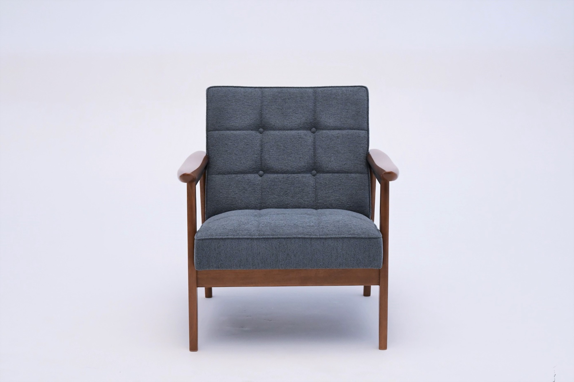 伝統的なアサギ色を再現した落ち着いたブルーの張地と、定番のウォールナット色の木部を組み合わせた「アサギ classic」。
