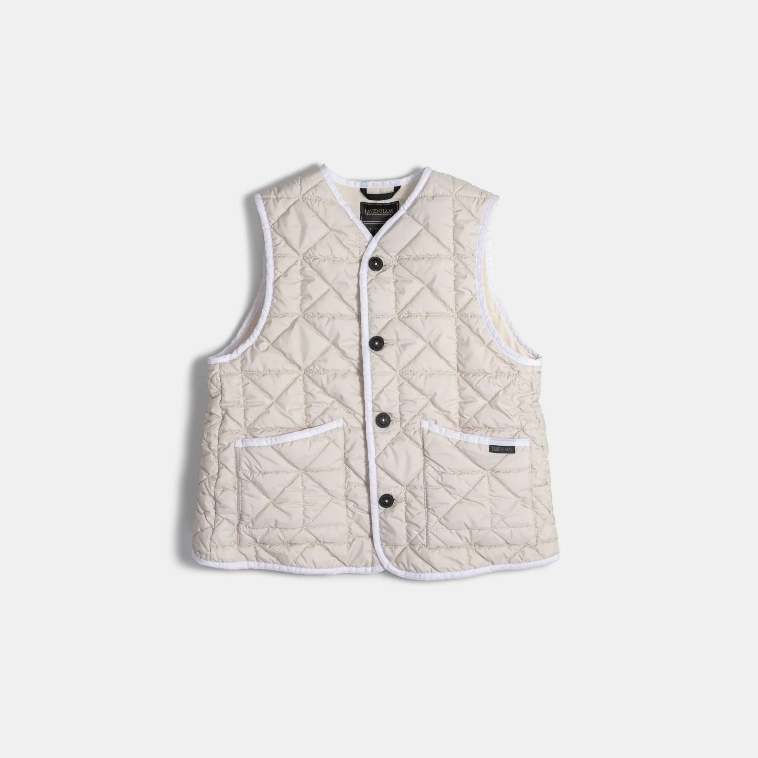 汎用性が高いキルティング・ジレ(ベスト)「ソーンハム」をガーメントウォッシュ加工でアレンジ。