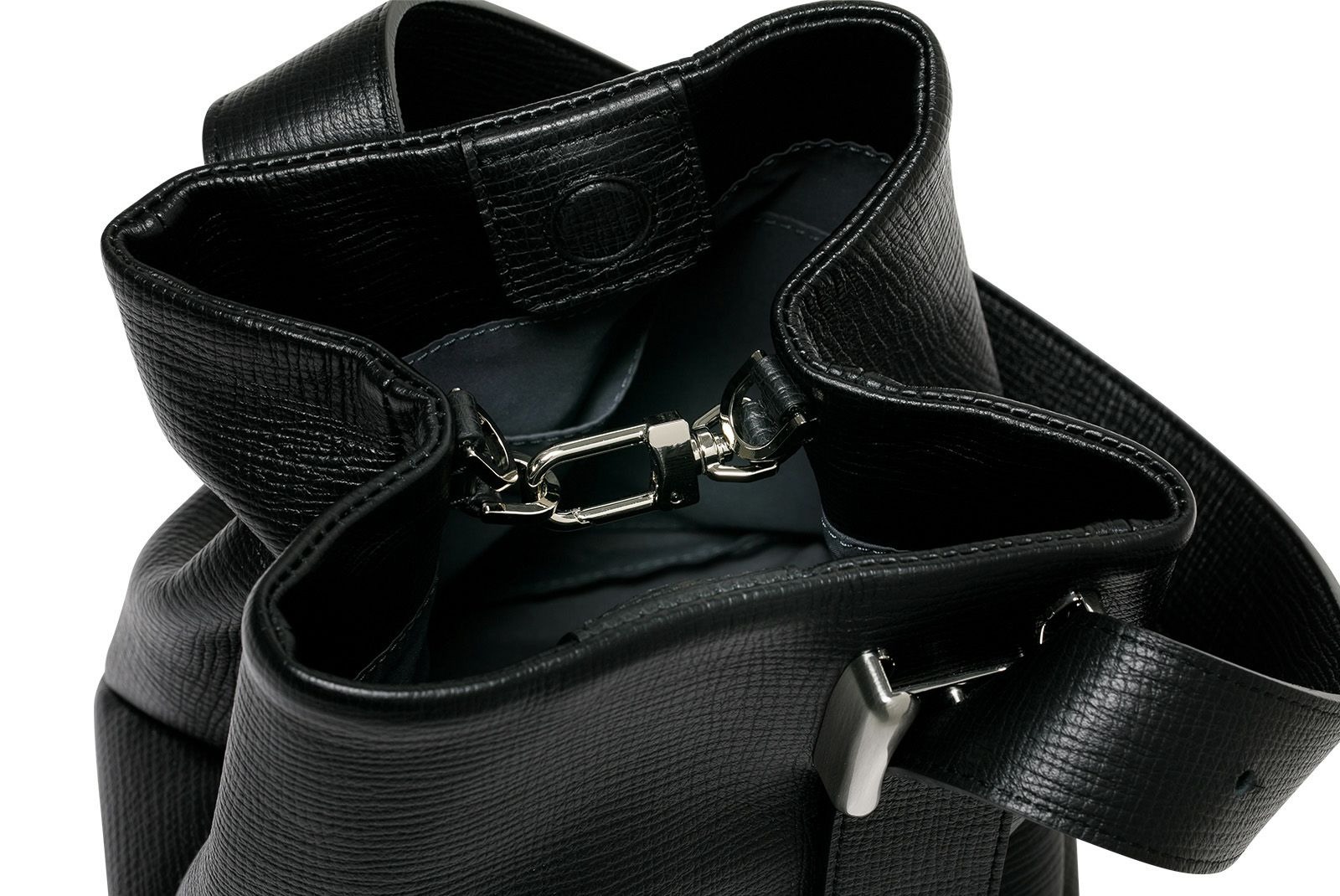 シンプルなデザインのアクセントとなるよう、印象的なメタルバックルを組み合わせています。