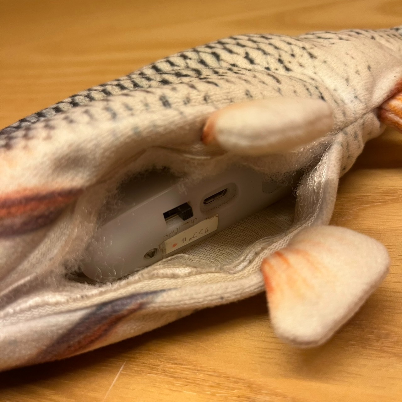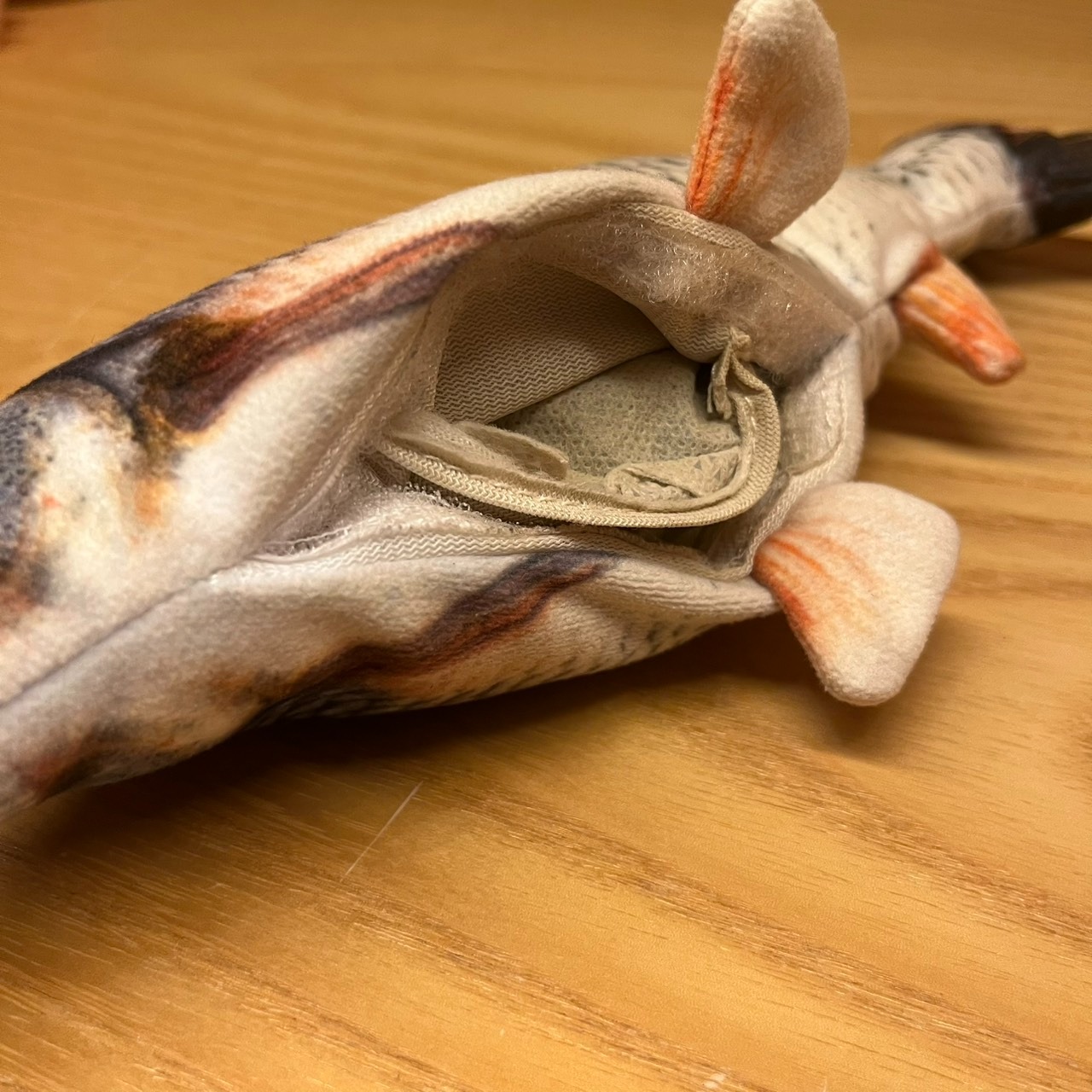 お腹部分にモーターとマタタビパックを入れるポケットがあります。