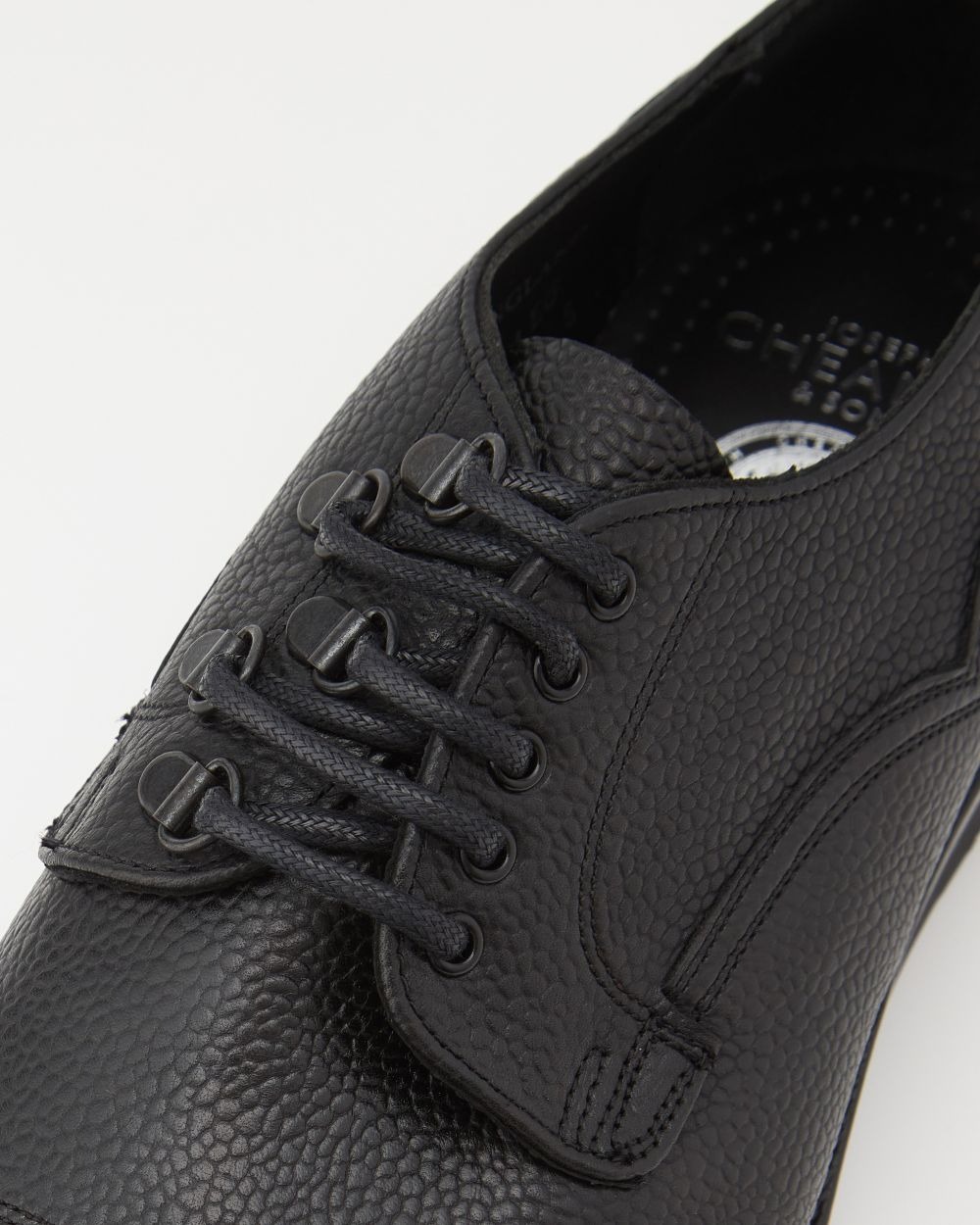今回ベースとなったのは、ENGINEERED GARMENTSのファウンダーである鈴木大器氏も愛用しているJOSEPH CHEANEYを代表するアイコニックモデル「CAIRNGORM IIR(ケンゴン IIR)」。採用されている木型は、“ミリタリーラスト”と呼ばれる「4436」。英国軍の靴にも使用されていた背景を持ち、短めのノーズと丸みを帯びたフォルムが特徴です。アッパーには、インラインでも採用されているスコッチグレインレザーを使用。堅牢度の高いヴェルトショーン製法や雨や埃の侵入を防ぐ「ベローズタン」仕様はそのままに、アイレットを片側だけ D リングに変更し、左右非対称のジグザグ配置で独自の表情を加えました。