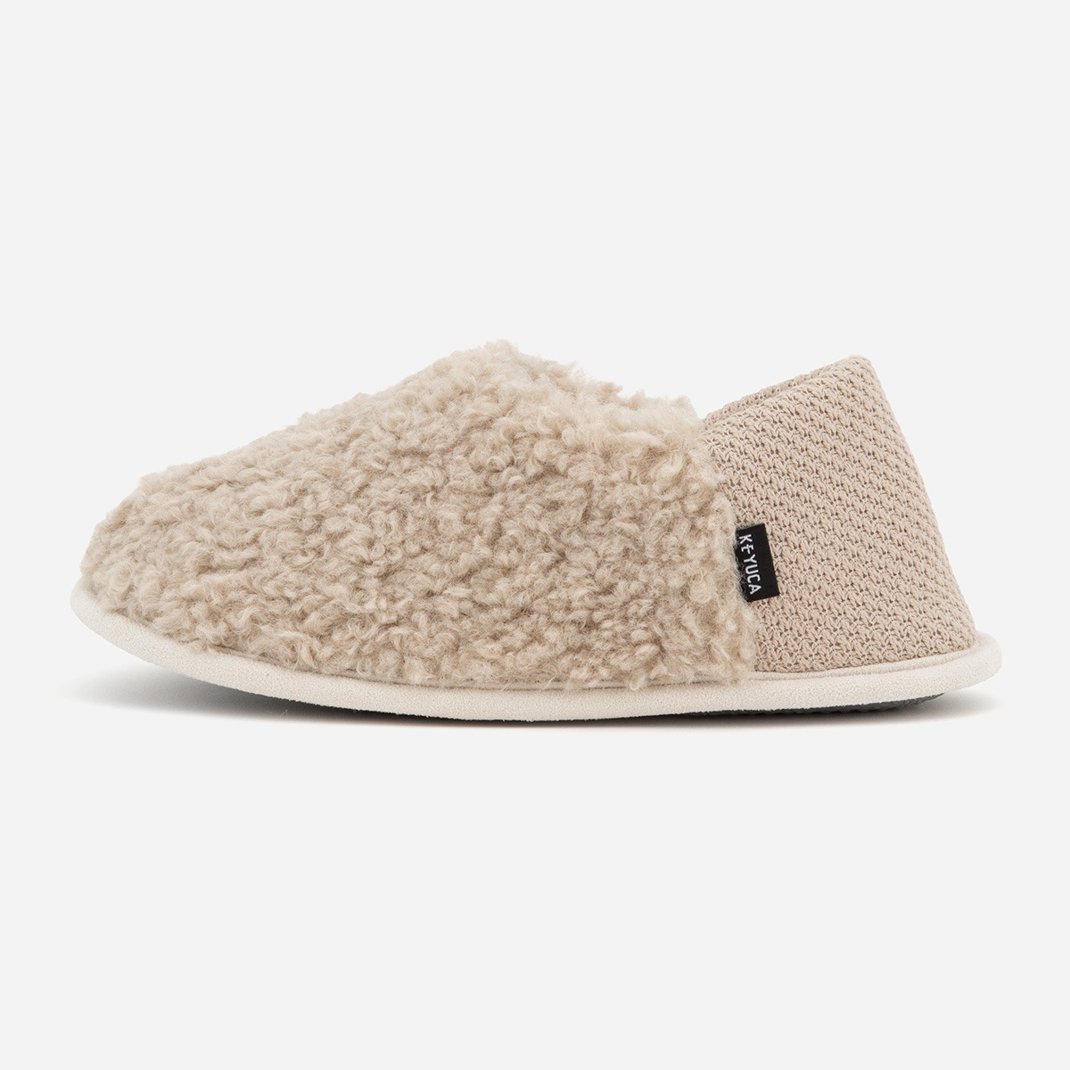 底は水がしみない素材の、フィット感抜群のバブーシュ。クッションも厚めで、底冷えしにくいです。