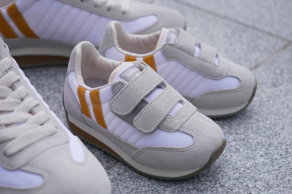 ナイロン部分はクリーンなホワイトを、ベロア部分には優し気なベージュを使用。