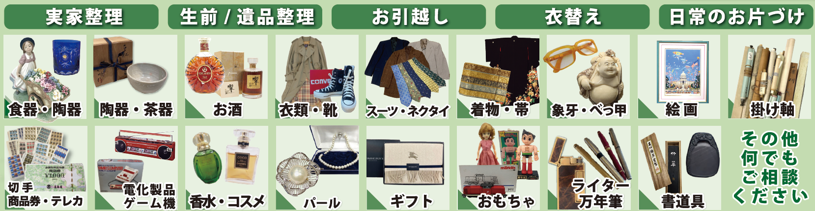 実家整理、お片付け、生前整理、遺品整理、お引っ越し、買い替え、衣替えなど
