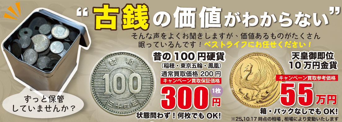 古銭、記念硬貨、商品券、骨董品、お酒、香水など幅広く査定しております♪