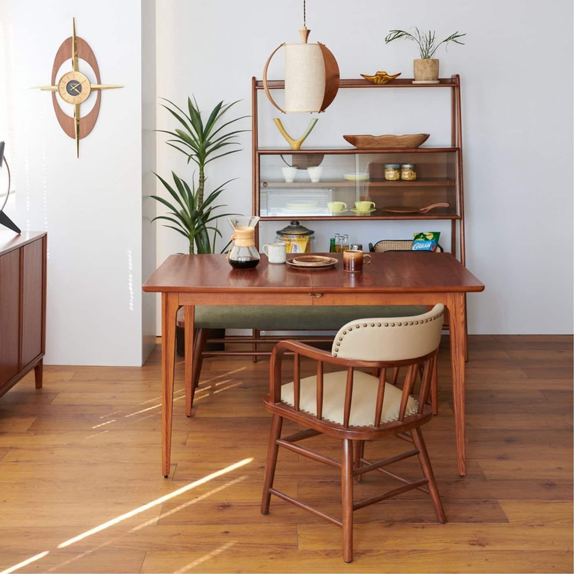温かみのあるウォルナット材の質感とシャープなレッグラインのバランスが絶妙で、どんなインテリアにも馴染みます。