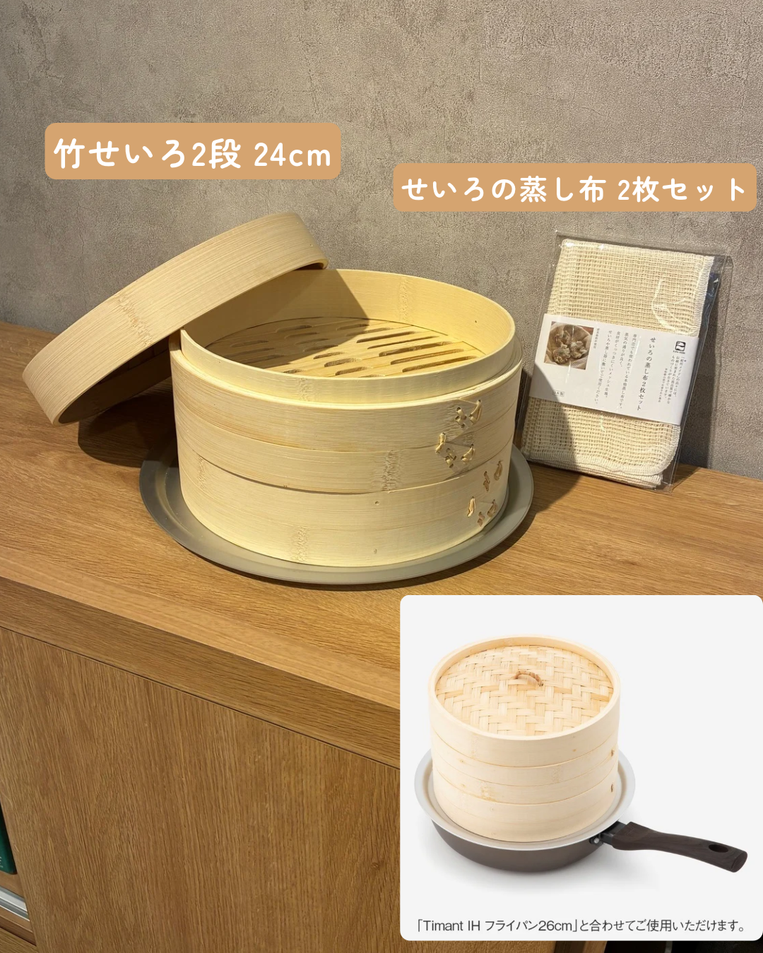 ・「せいろの蒸し布 2枚セット」と合わせてお使いいただけます。