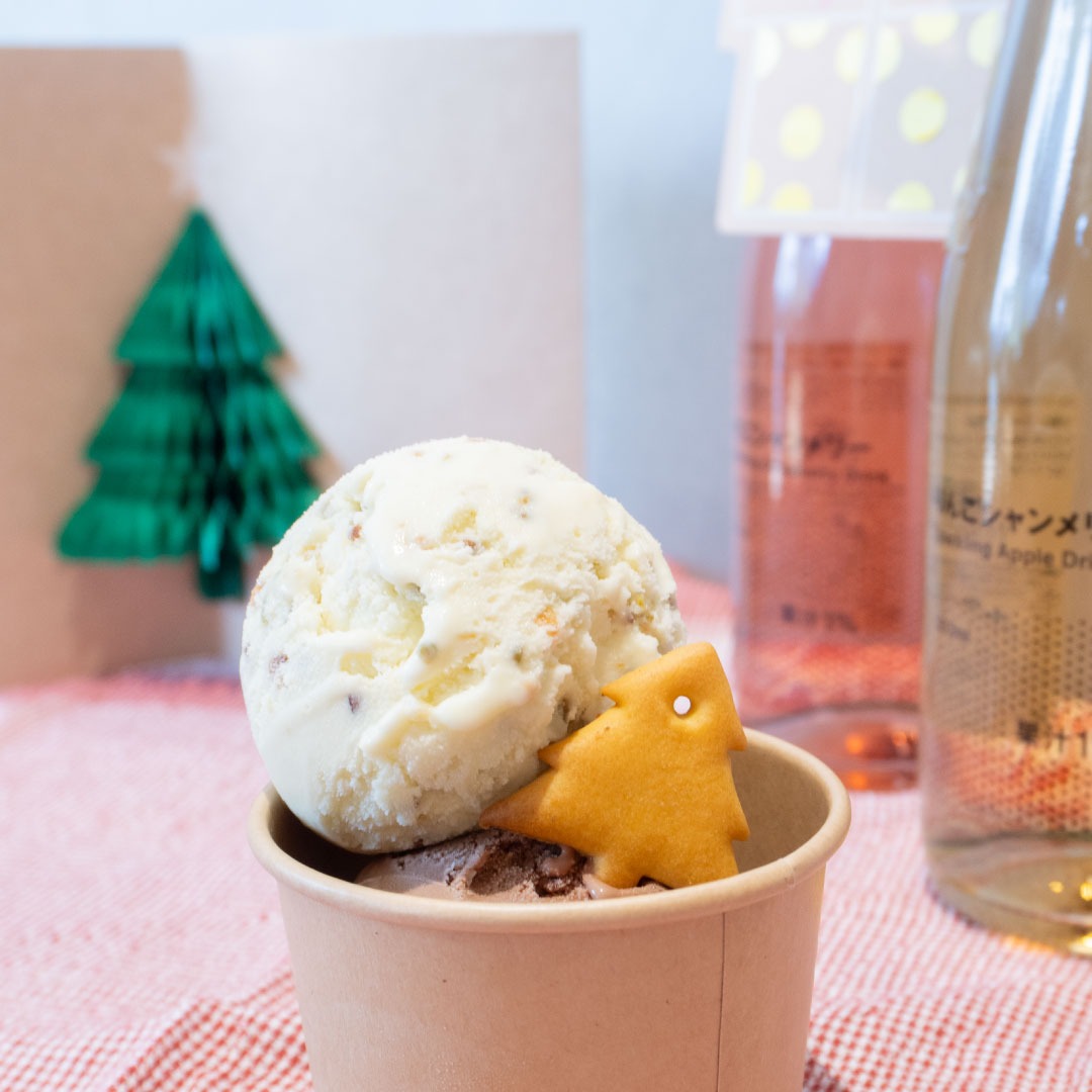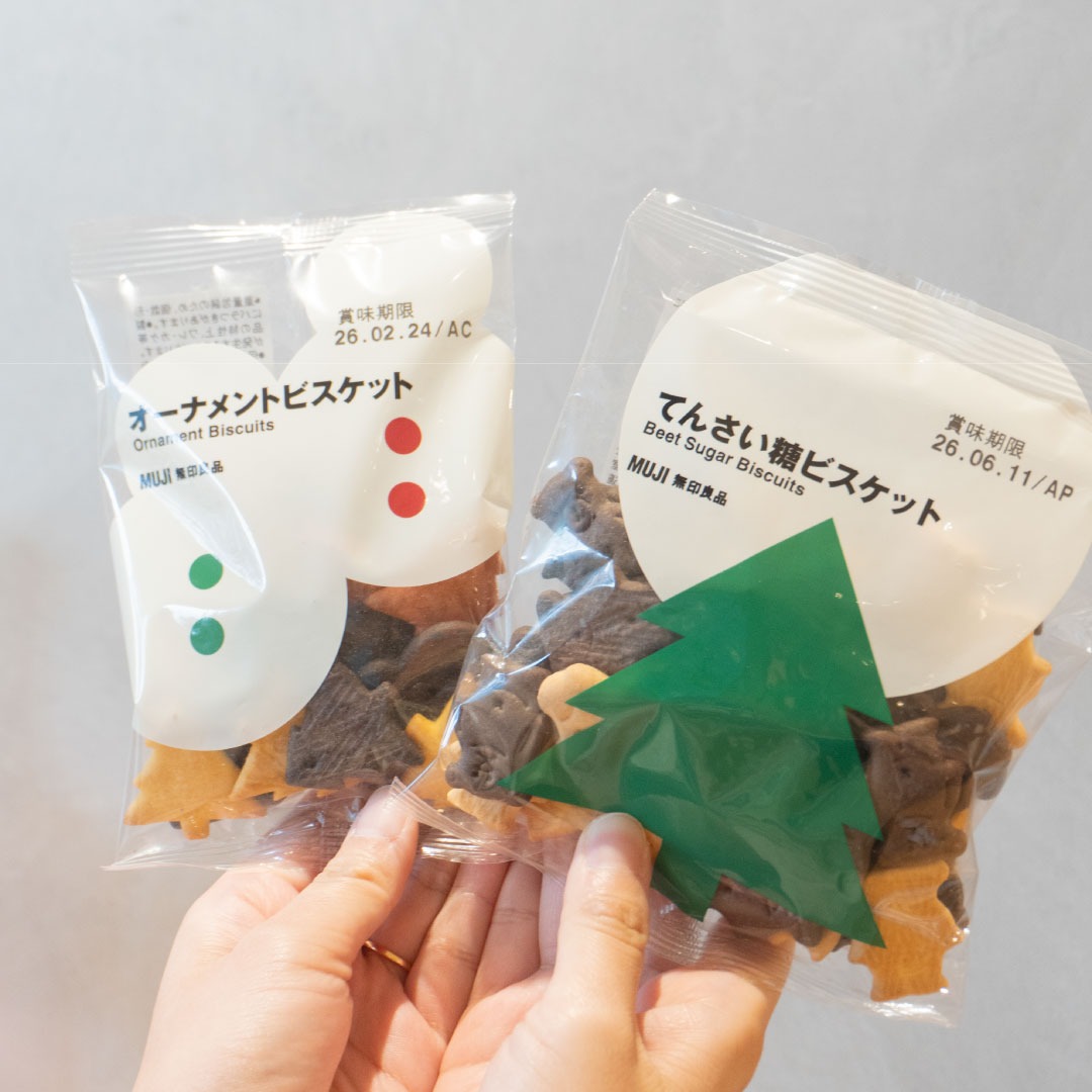 トッピングのビスケットは、無印良品の中でも人気の「てんさい糖ビスケット」とクリスマス限定商品の「オーナメントビスケット」です。