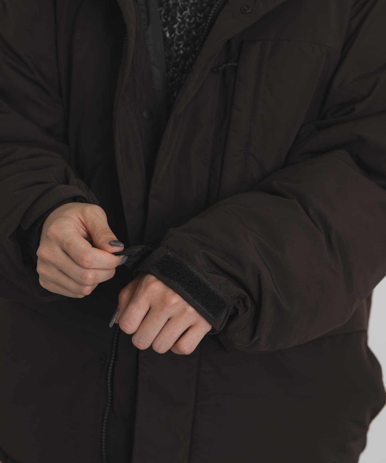 フード口・裾はドロスト仕様、袖口にはインナーカフス、首元とポケット袋布に起毛トリコットを使用して防風・防寒対策も完璧。