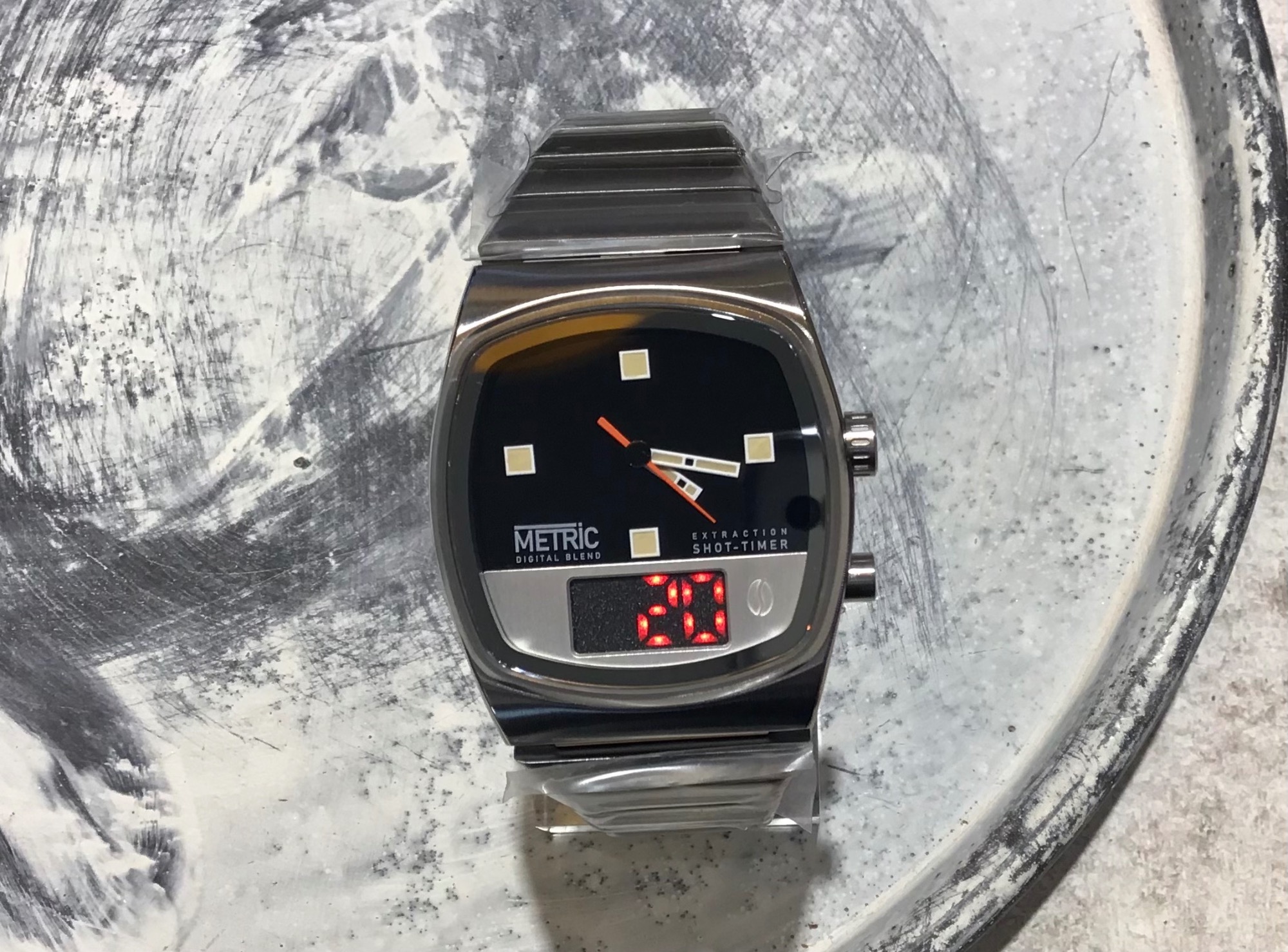 シンプルなデザインのダイヤルの下に配置されたタイマーはエスプレッソの抽出時間を表示しています!