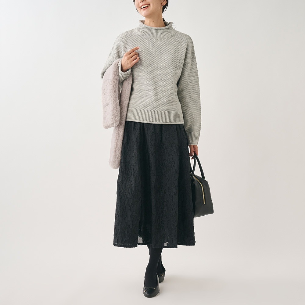 シンプルになりすぎない編地で色々なボトムスと好相性です。