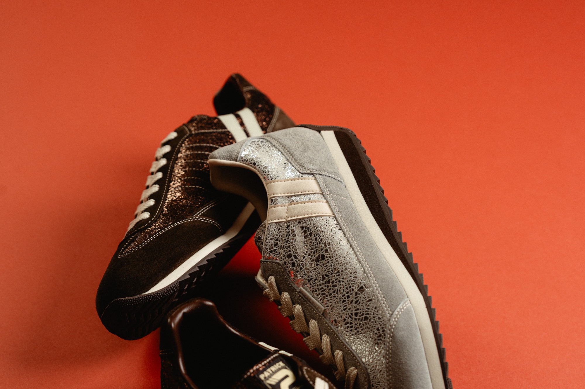 クラッキング加工を施したメタリックフィルム付きステアレザーが主役。