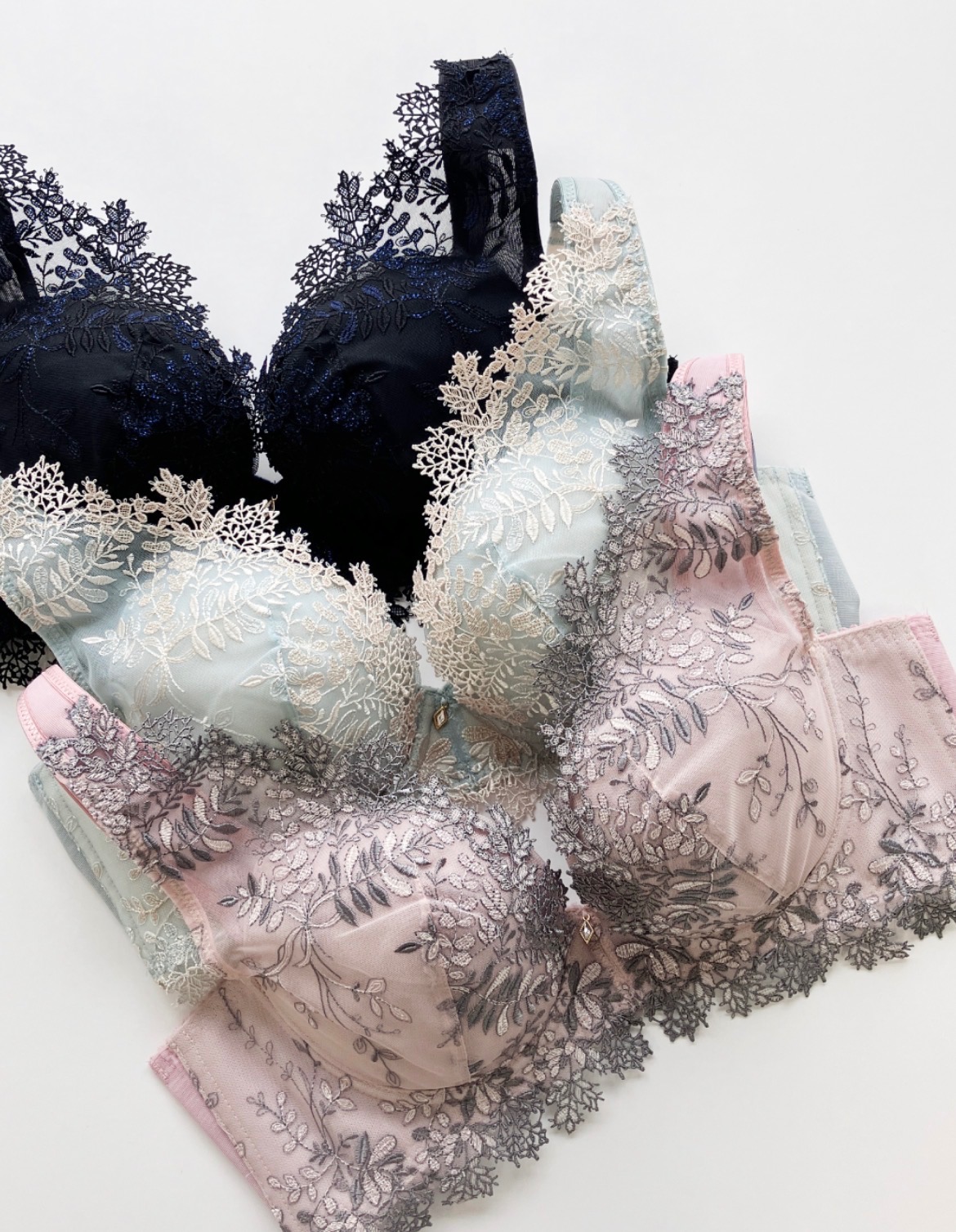 デコルテとアンダー部分のレースが華やかで上品なこちらのブラ💖