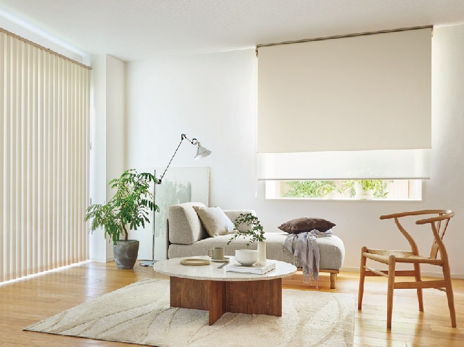 すっきり見せてくれるロールスクリーンや、