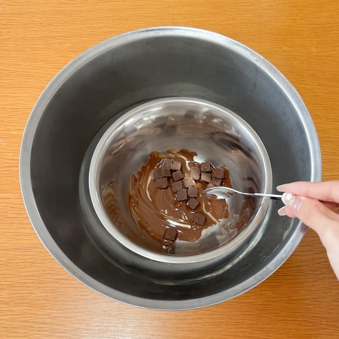 ボウルにチョコレートを入れ、湯せんにかけて溶かします。