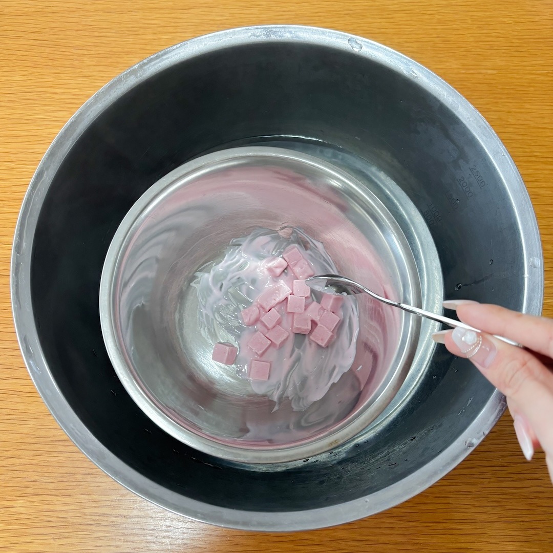 ストロベリー風味チョコレートも同様に作ります。