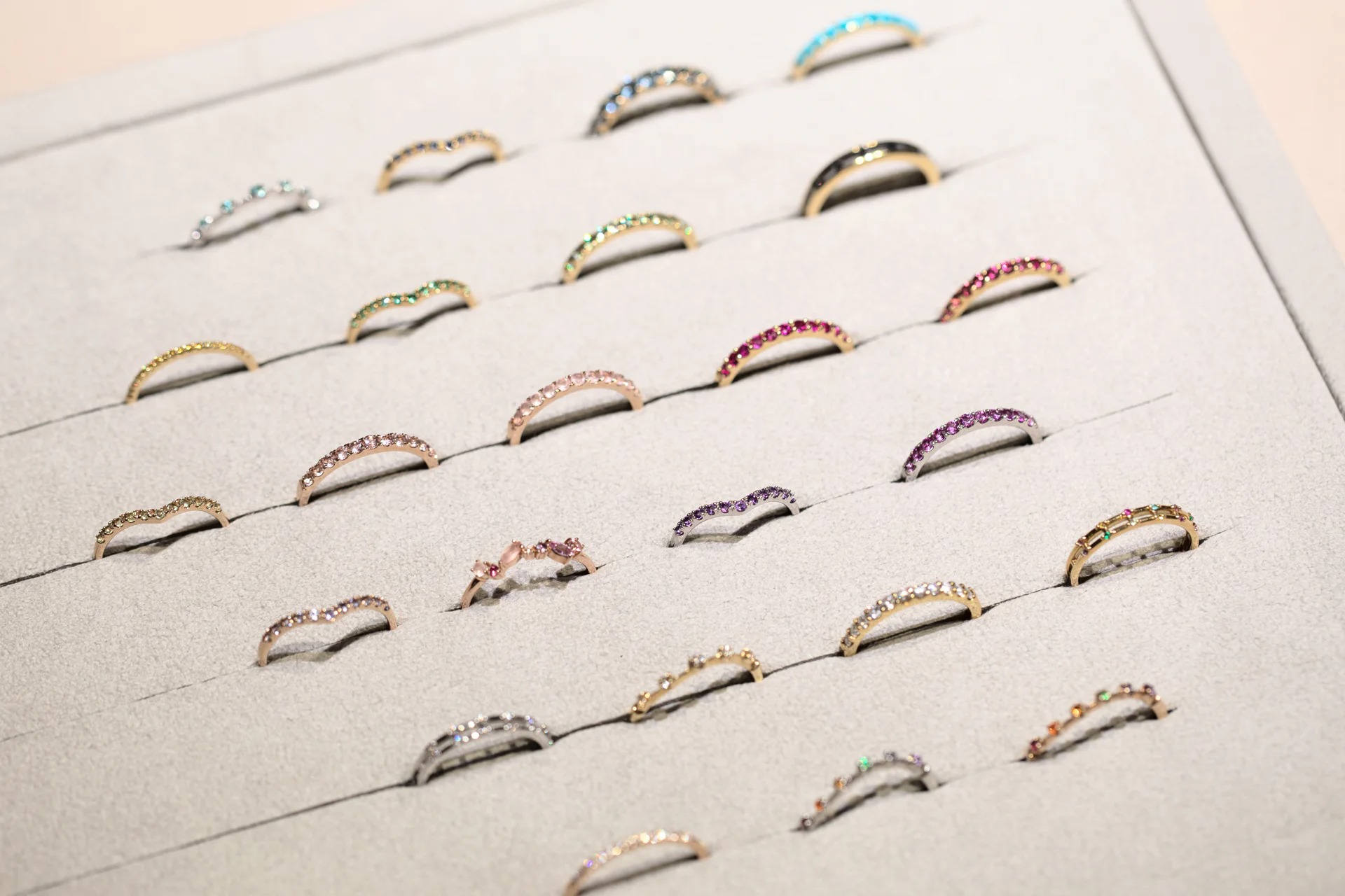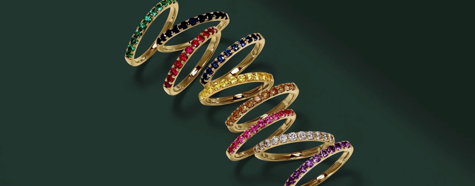 永遠の定番エタニティリングを、世界中から集めた29種類以上の宝石で仕立てました。