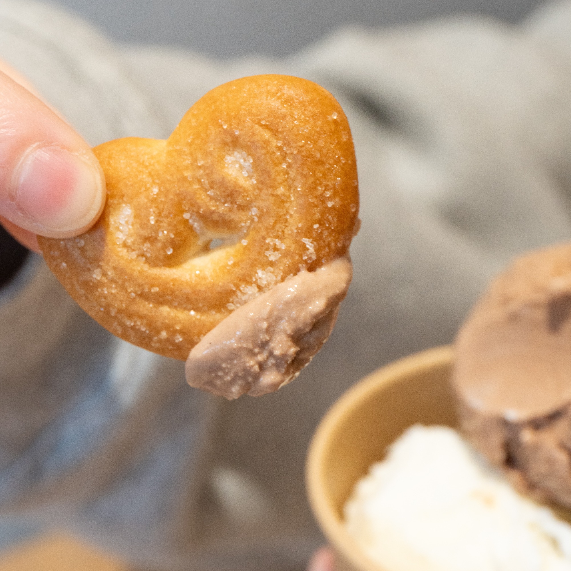 トッピングのビスケットは、りんごバタービスケットで、バレンタインにぴったりなハート型のビスケットです。