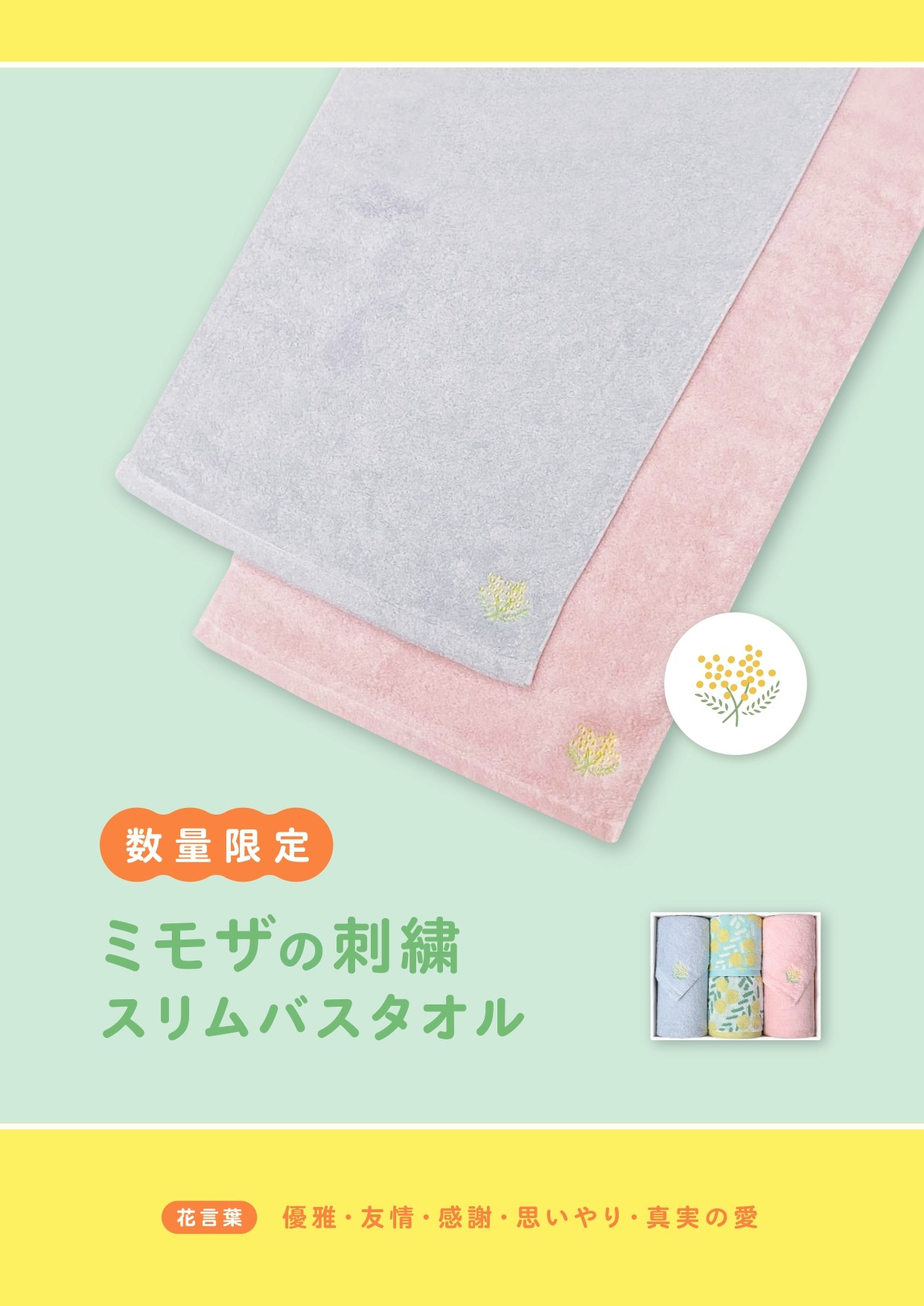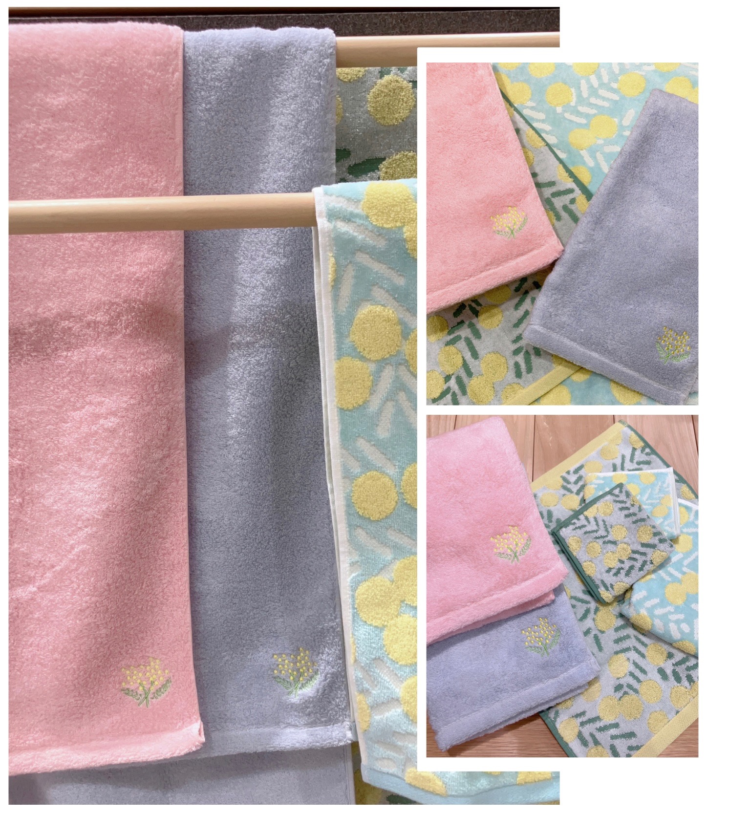 ⭐︎数量限定で2月1日より発売開始!ミモザの刺繍入りスリムバスタオル⭐︎