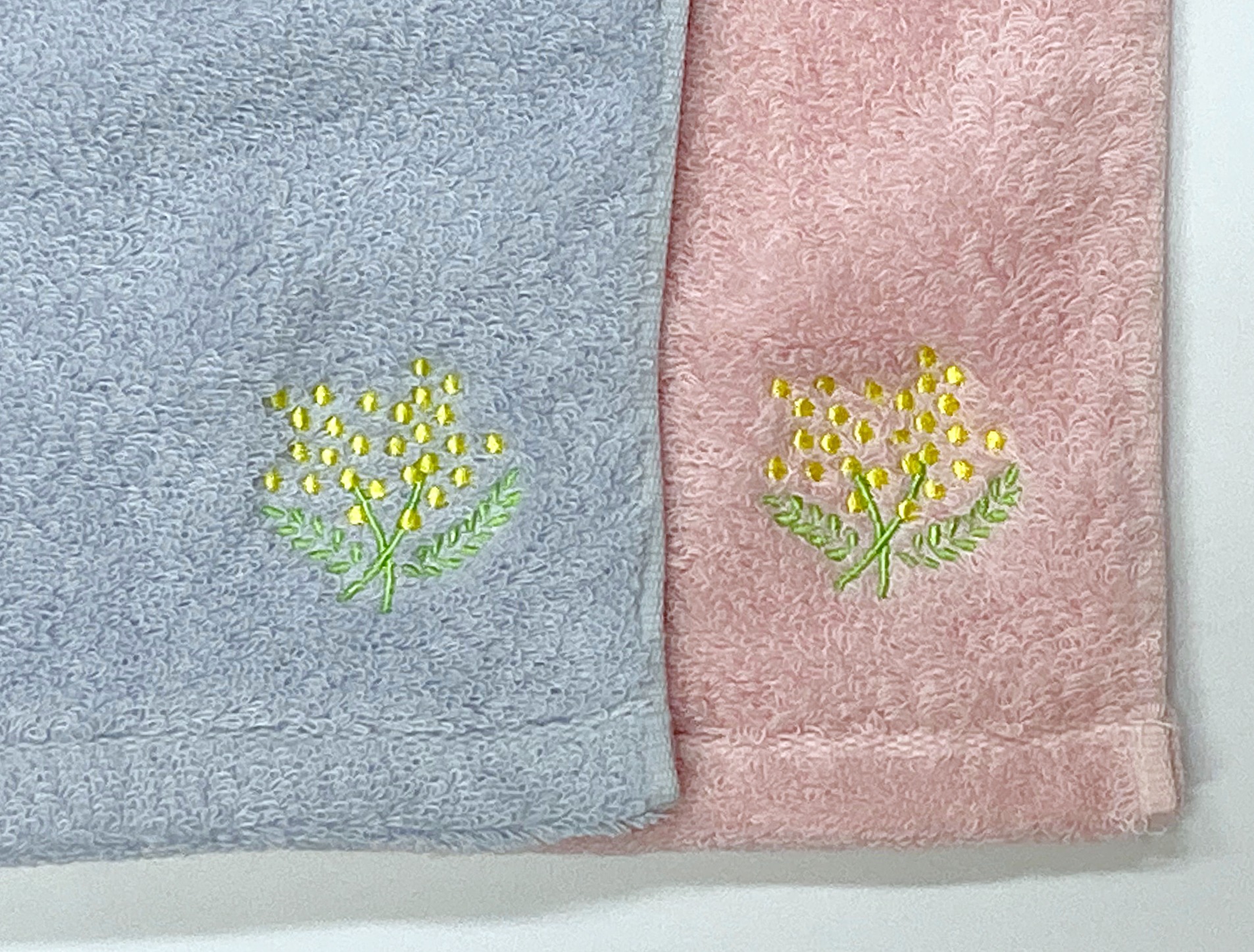 伊織ではいくつかのミモザモチーフの今治タオルをご用意しております。