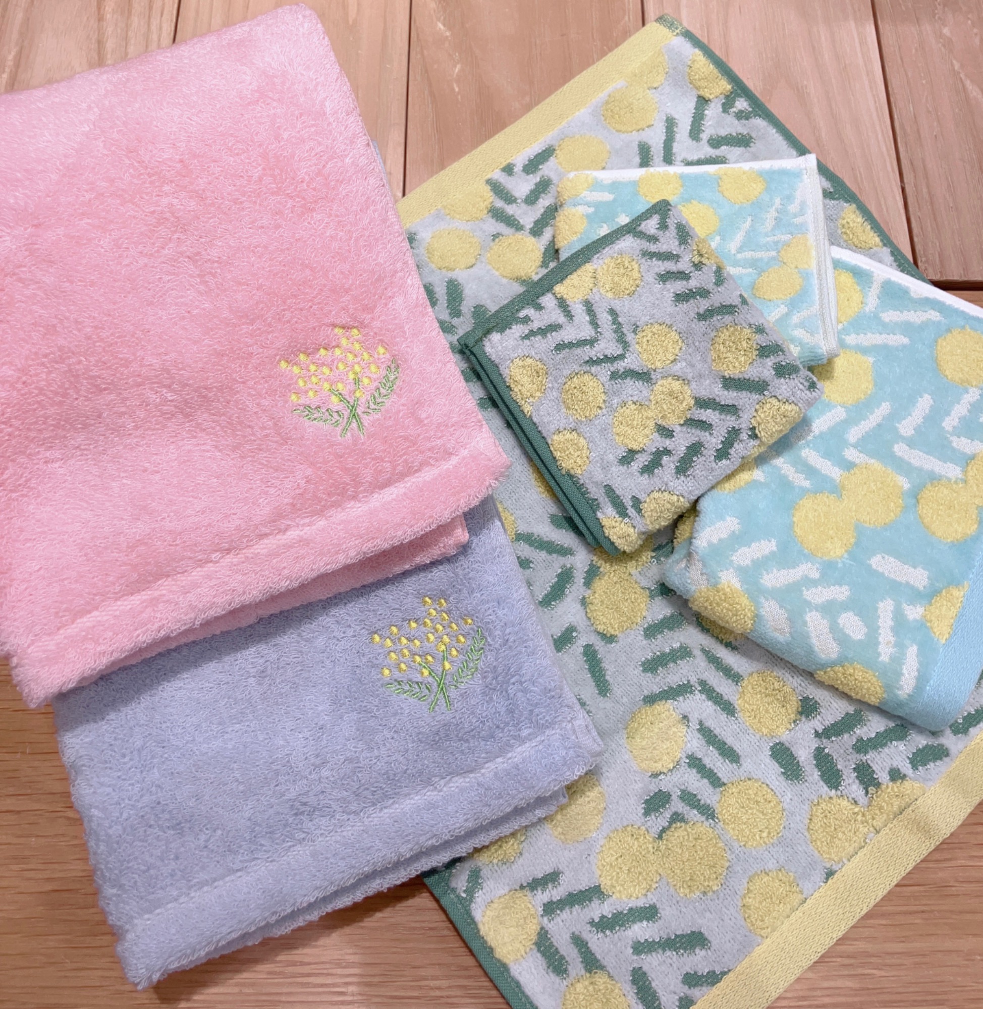 3月8日の「国際女性デー」にちなみ、ミモザモチーフの今治タオルが勢ぞろい♪