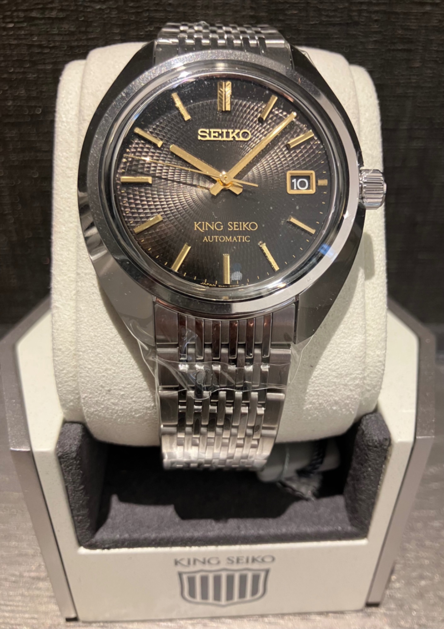 キングセイコーから、薄さが際立ち優美な輝きを放つケースデザインと快適な着け心地の多列ブレスレットを備えるKS1969シリーズから限定モデルが登場いたします。ダイヤルには、精工舎の設立前に服部金太郎のアイデアで輸入懐中時計に施された美しい彫刻から着想を得た型打文様と、深みのあるグレーのグラデーションを組み合わせました。文様の精緻な美しさと、ゴールドカラーのロゴや針、インデックスが際立つモデルです。