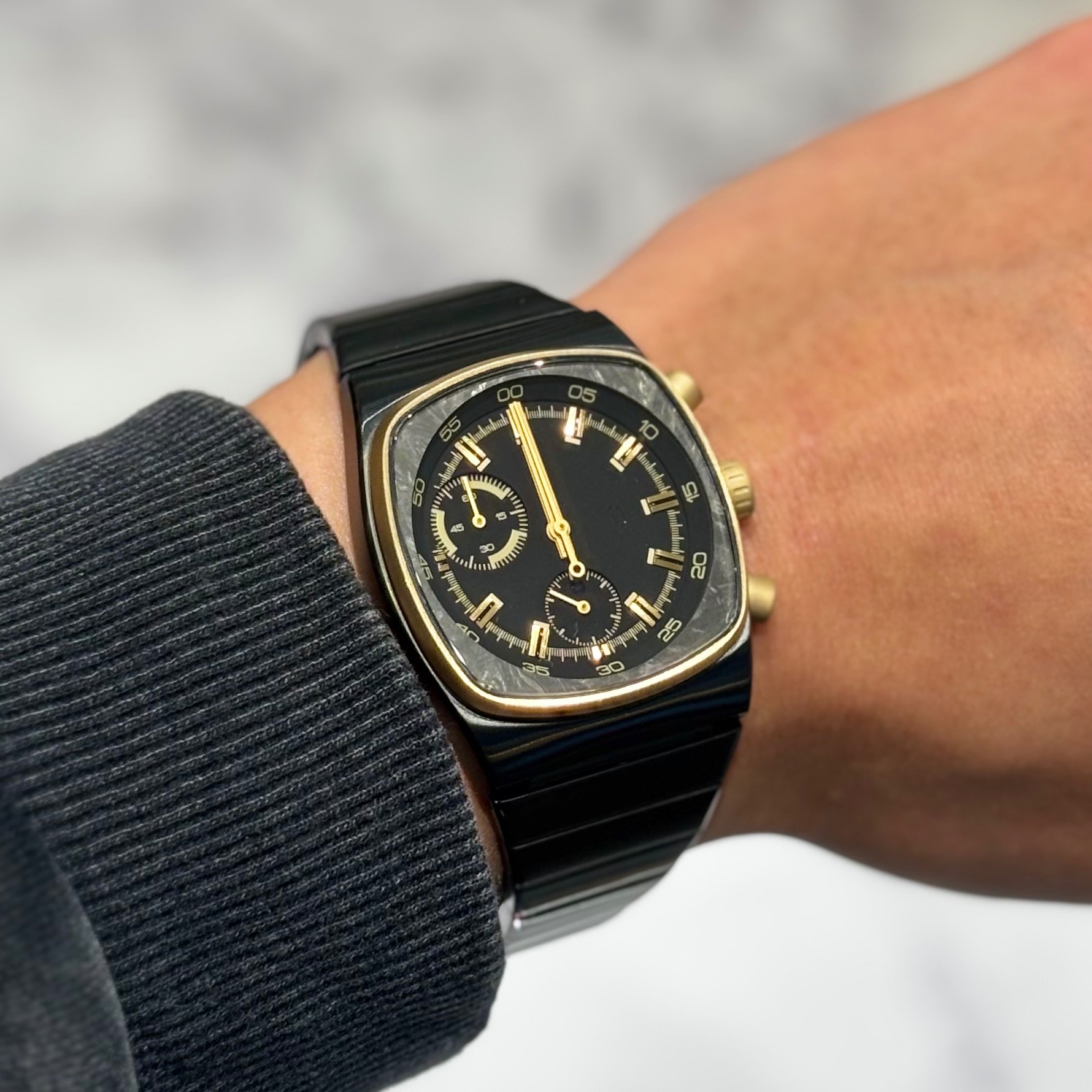 【ケース素材】316L ステンレススチール + PVDブラック/ゴールド + フォージドカーボン