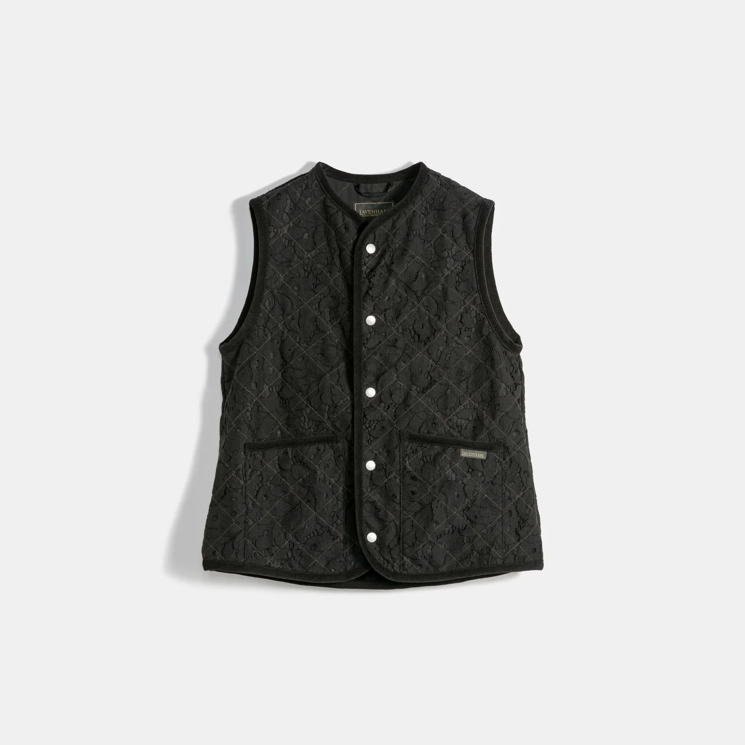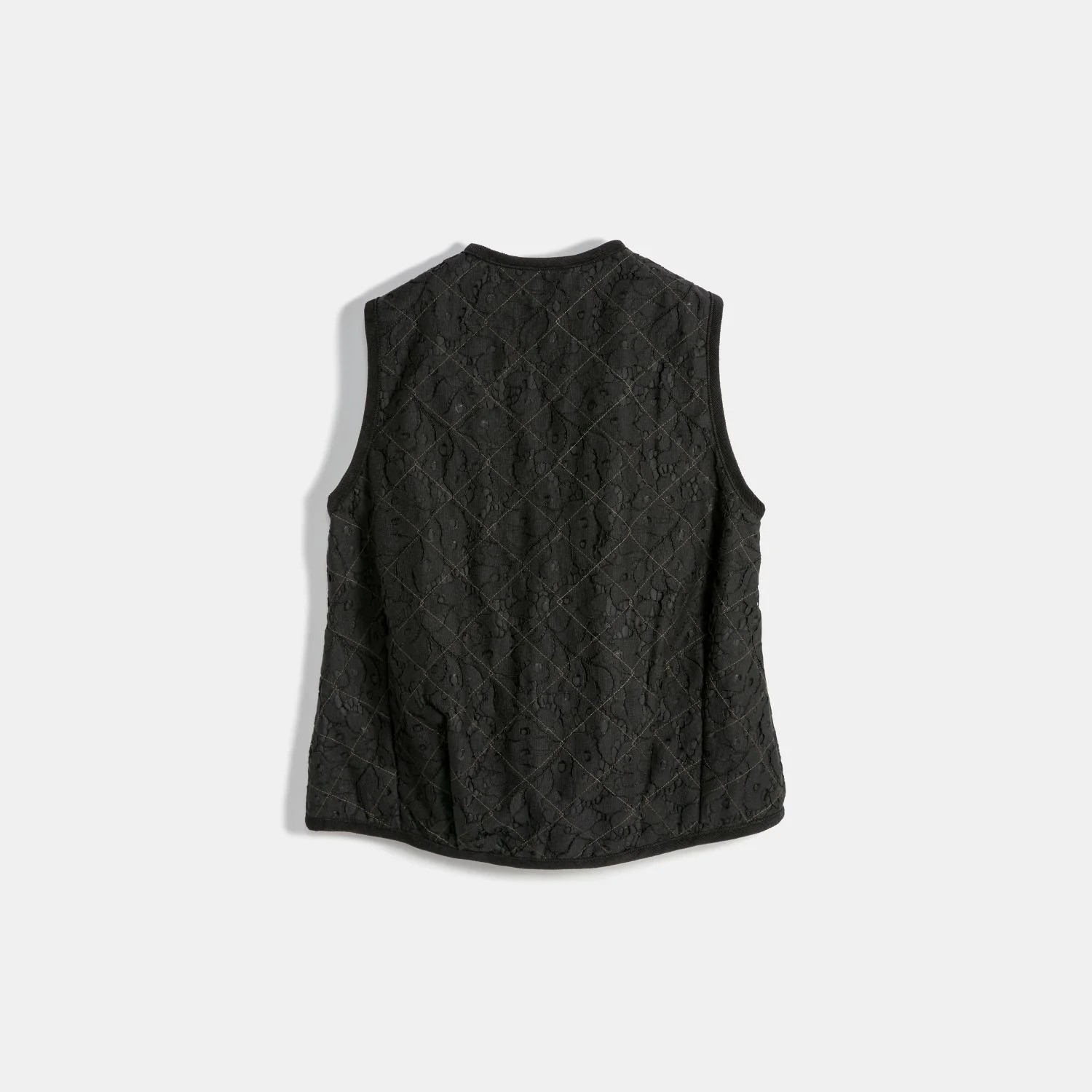 コットンミックスのレース生地と「UNWADDED(中綿なし)」で再構築。春夏シーズンのレイヤリングに最適なジレです。
