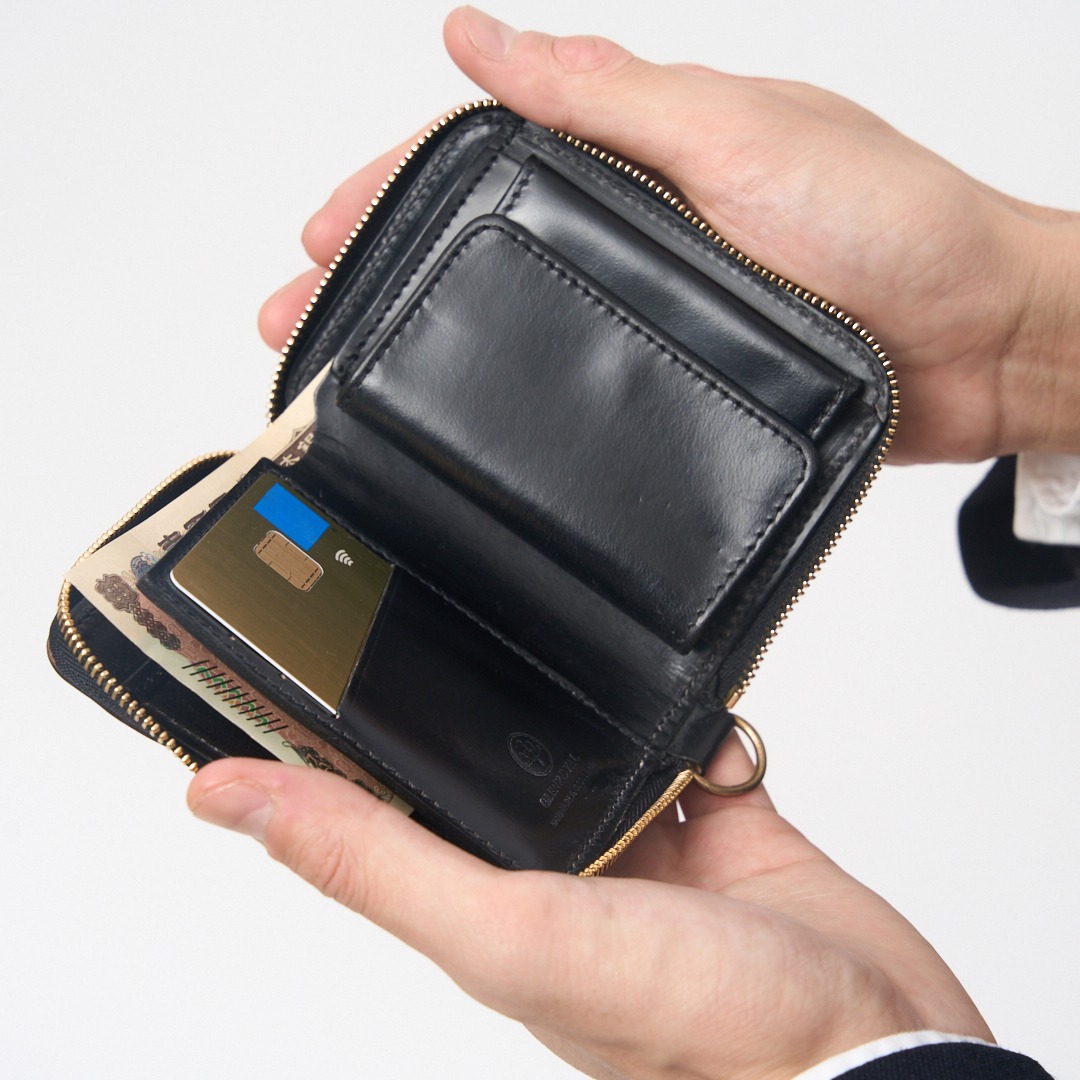 ジャケットの内ポケットにも入るコンパクトサイズながらカード入れ、小銭入れも備えたスモールジップウォレット。お会計時や、交通ICや身分証を取り出す時、毎度手間取るのは自覚している以上に煩わしいものです。機能美溢れるミニ財布を使うことで、“ビジネスパーソンの天敵”といっても過言ではない日々のストレスを軽減できます。