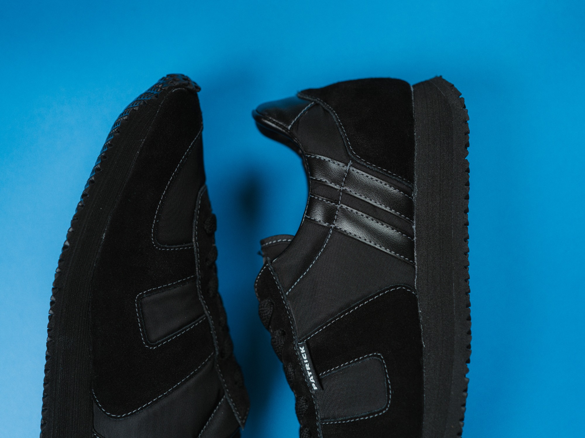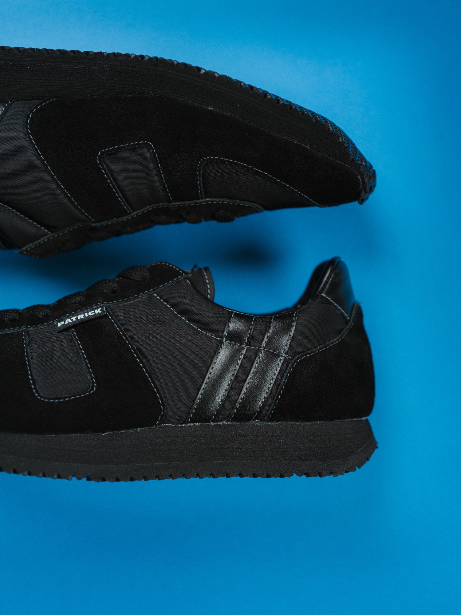 今回の新色「BB」は、アッパーからソール、PATRICKの象徴的な2本ラインまですべてブラックで統一。