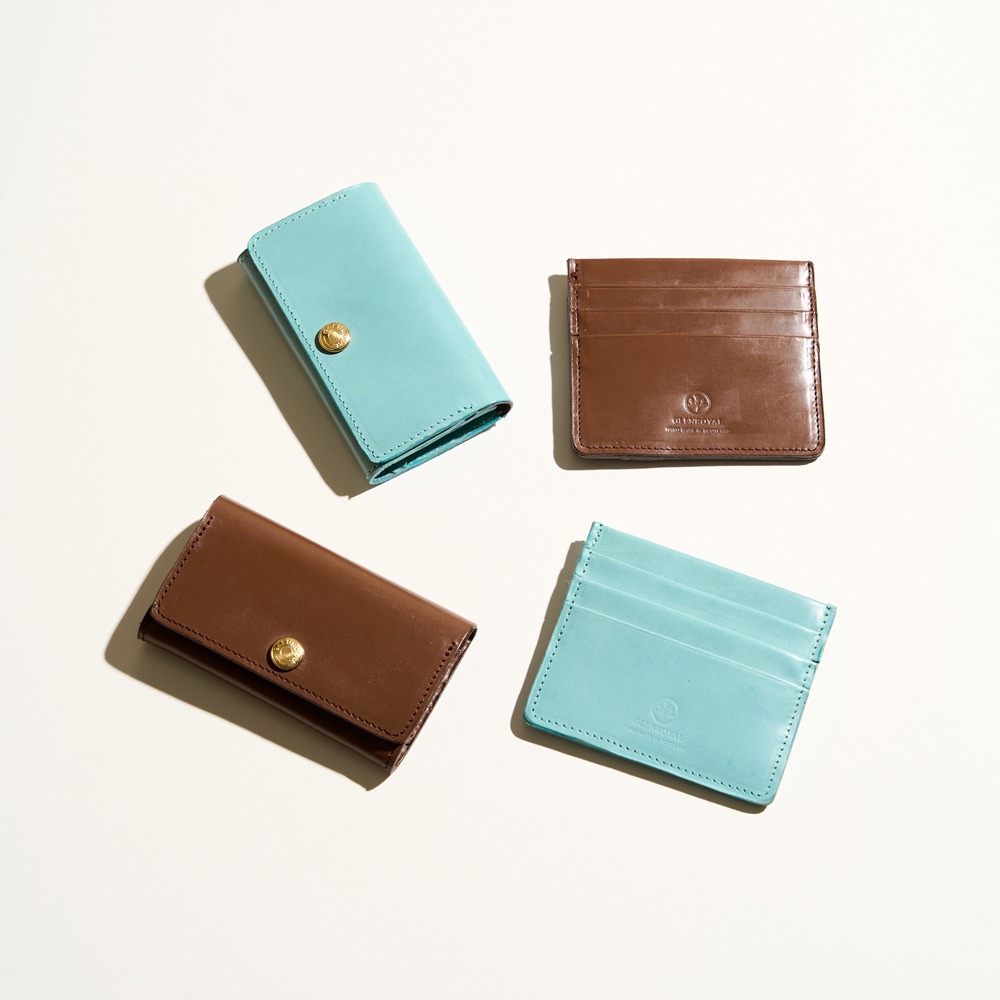 ミルクチョコレートのようなブラウンと、ミントカラーの名刺入れ&カードケース。やわらかな色合いが第一印象を和らげ、場の空気まで整えてくれそうです。ブライドルレザーできちんと感は保ちつつ、堅すぎない余白を添える、大人に似合うアイテムです。