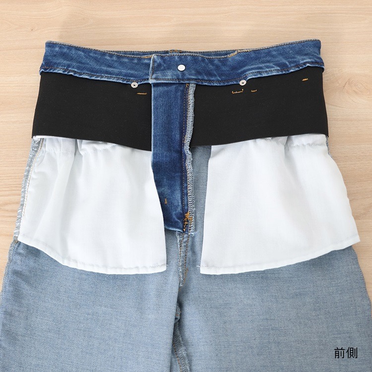・お腹まわりや、腰まわりをゴムがサポートしてスッキリ見えるデニムパンツ