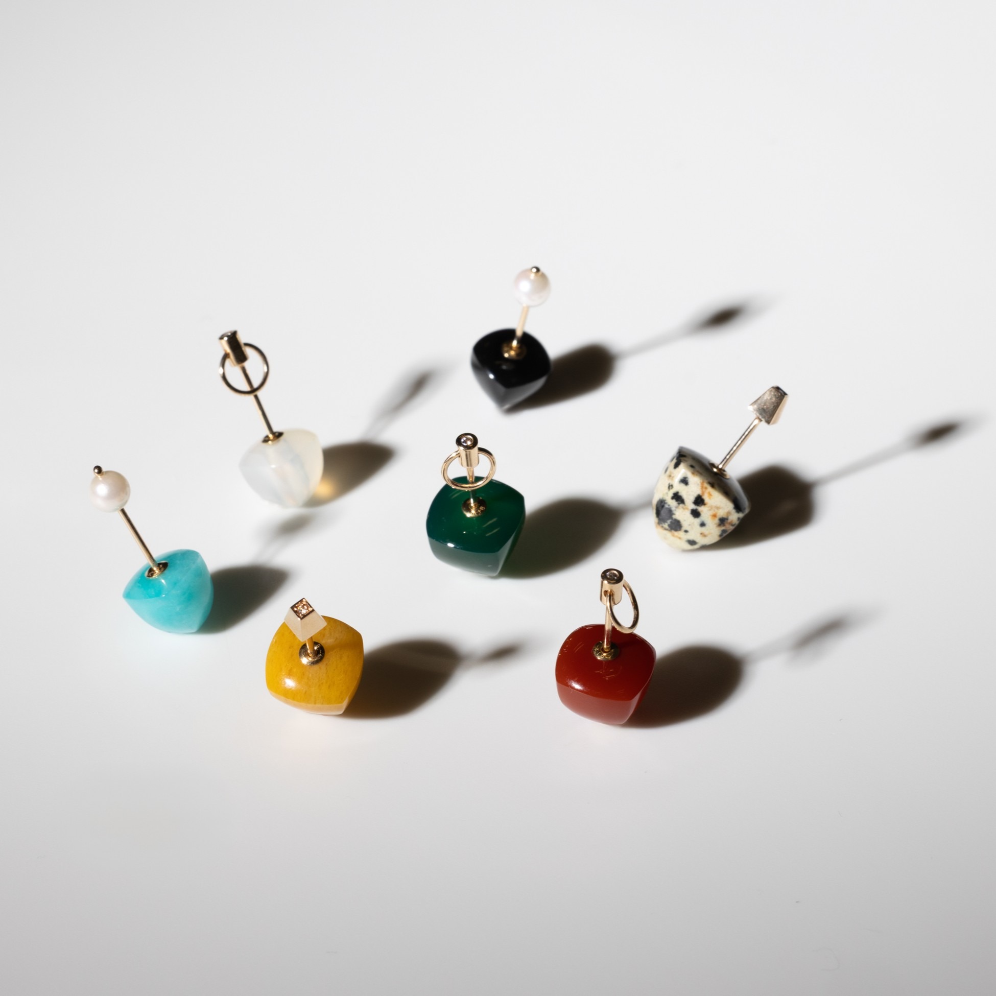 ベースになるピアスのデザインは、ピラミッド、ドアノッカー、アコヤパールの3種類。