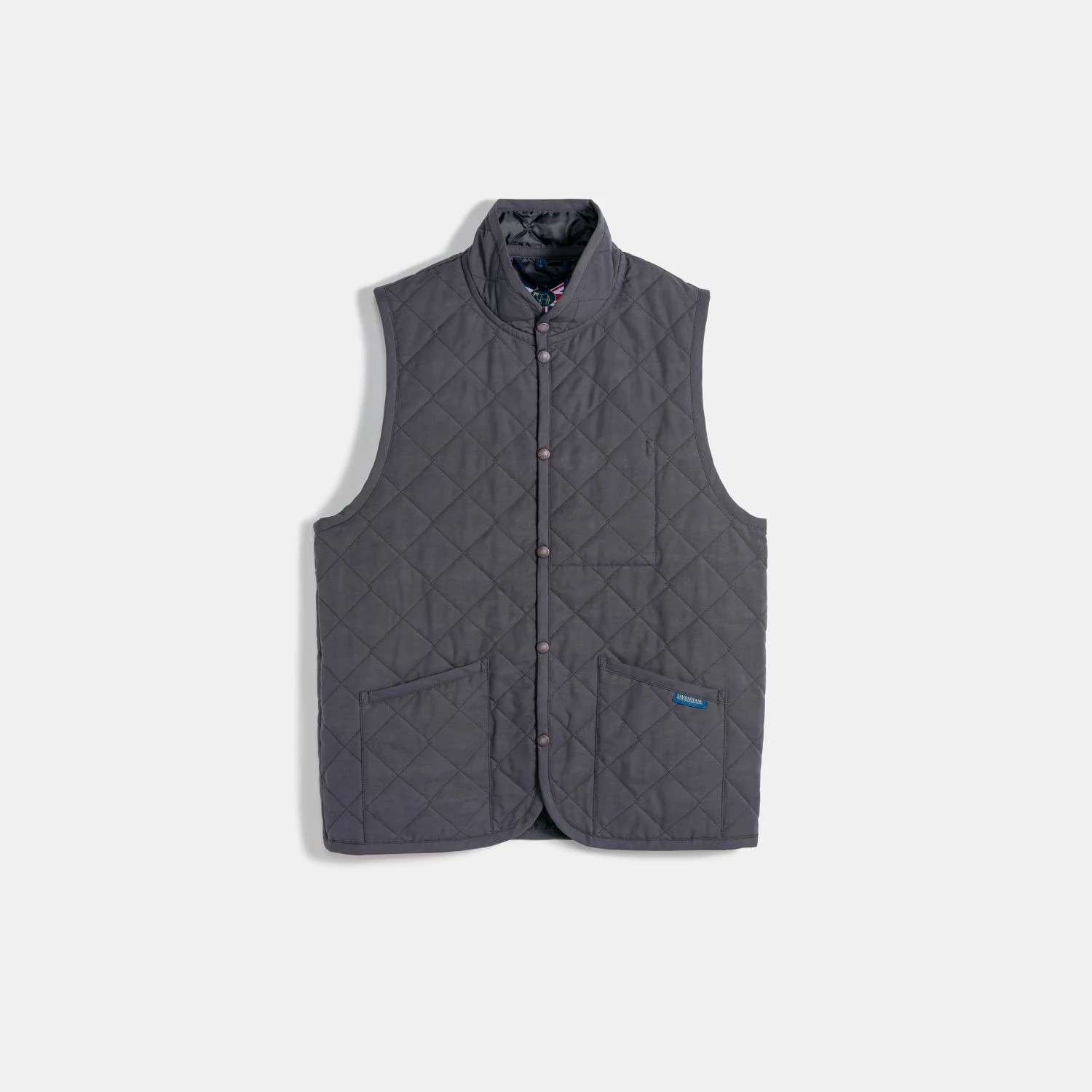 クラシックスなアウター・ジレ(ベスト)「MICKFIELD(ミックフィールド)」の表側の生地にコットン・ポリエステルのミックス生地を使用した中綿軽量版。