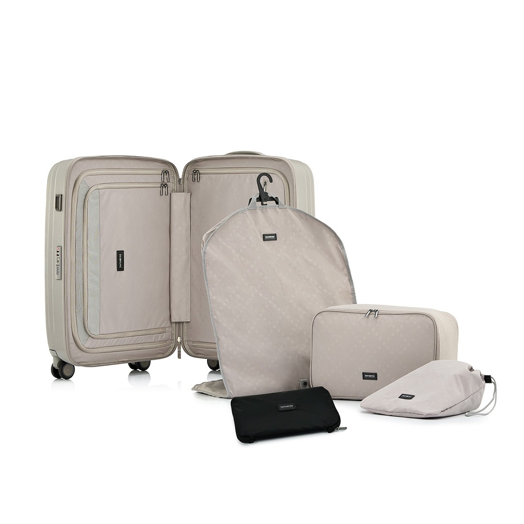 機能的な内装設計に加え、サイズごとにラゲッジカバーやシューズポーチなどの